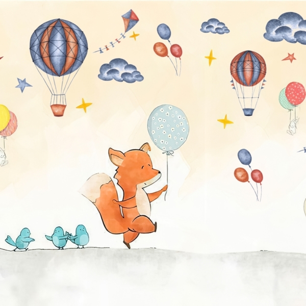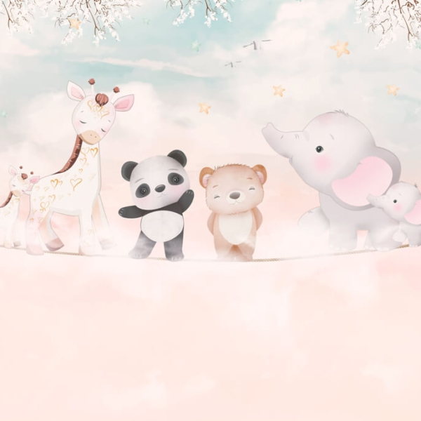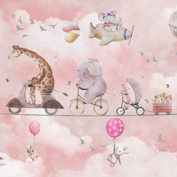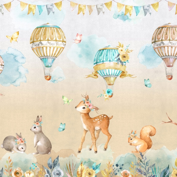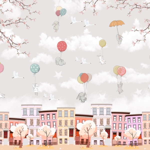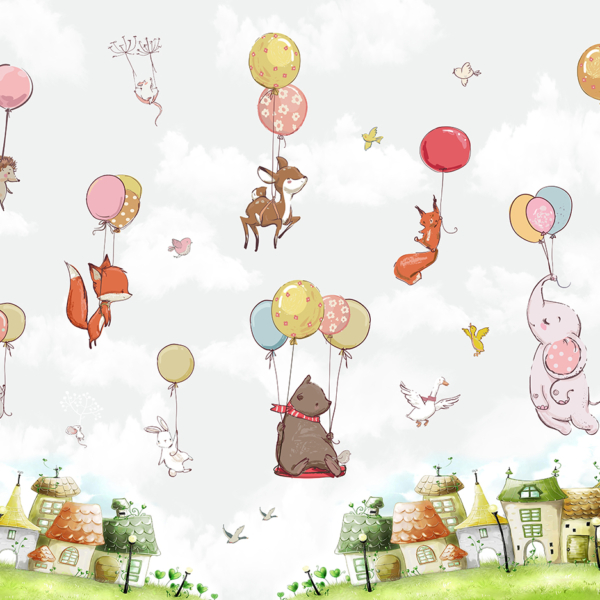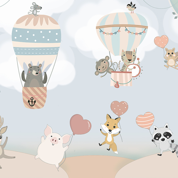 - Ref. proizvoda: 12119964258 Mural stvoren za najmlađe, koji će kod svih pobuditi pozitivno raspoloženje. U središnjoj točki nalazi se balon s raznim životinjama. U pozadini se vidi palača poput Disneyevih bajki. Osim toga, tu su i zečevi u kišobranu i nošeni balonima. Cijela stvar izgleda izuzetno prijateljski. Fototapeta privlači pozornost vrlo suptilnim izborom boja. Boje su pastelne, nježne, što samo…
