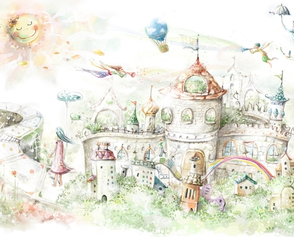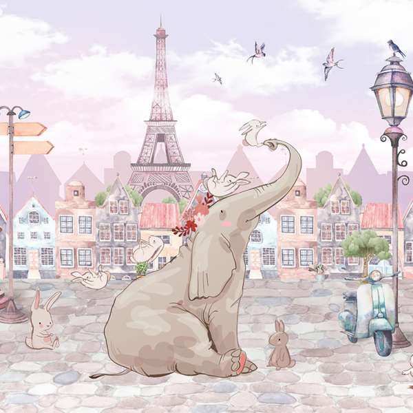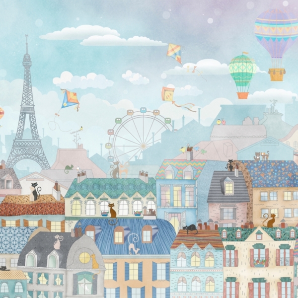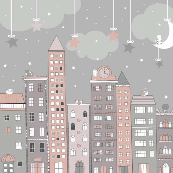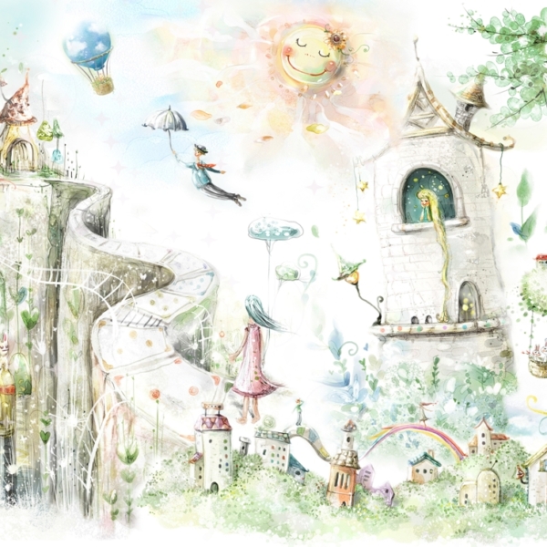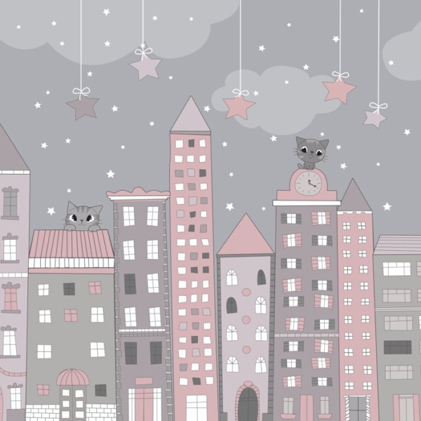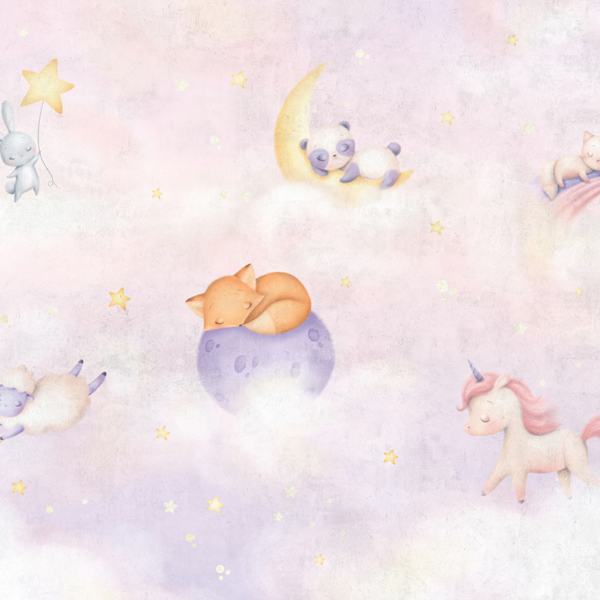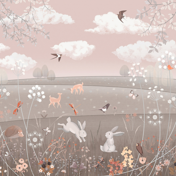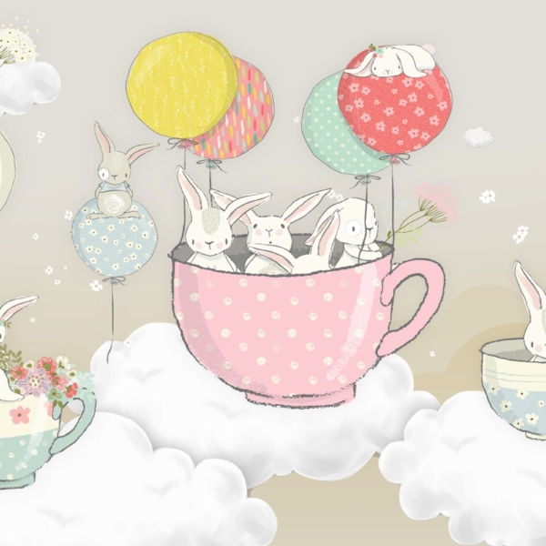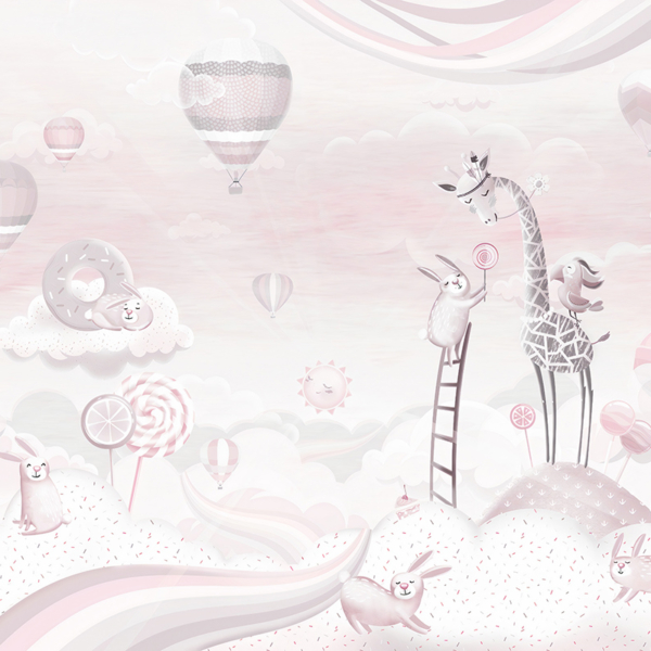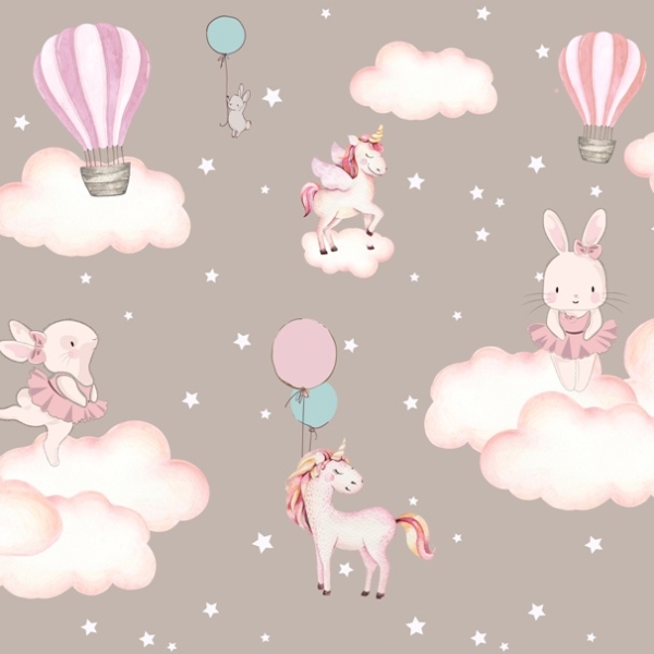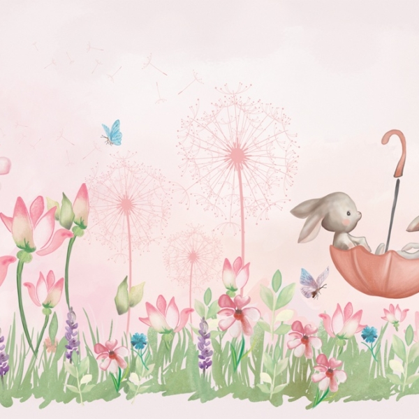 Kako bismo zadovoljili potrebe roditelja koji žele ukrasiti sobu iz snova svoje kćeri, nudimo, između ostalog, pozadinu sa zečićima nad ružičastim gradom.