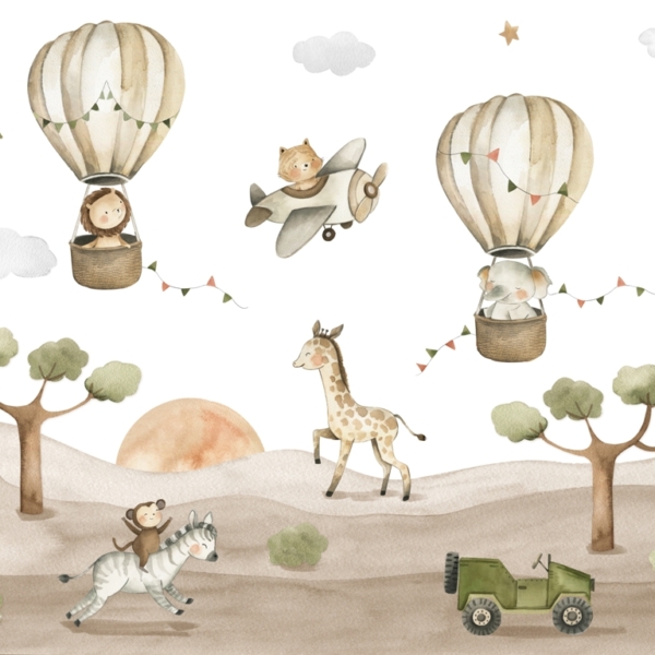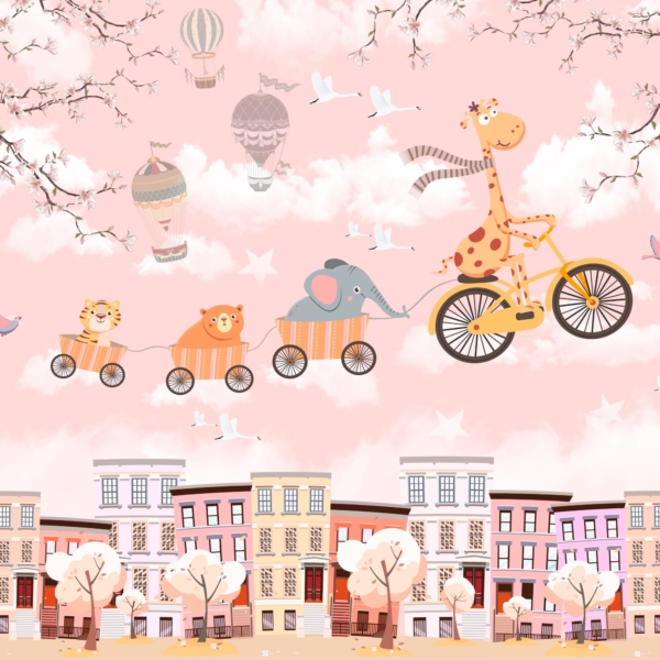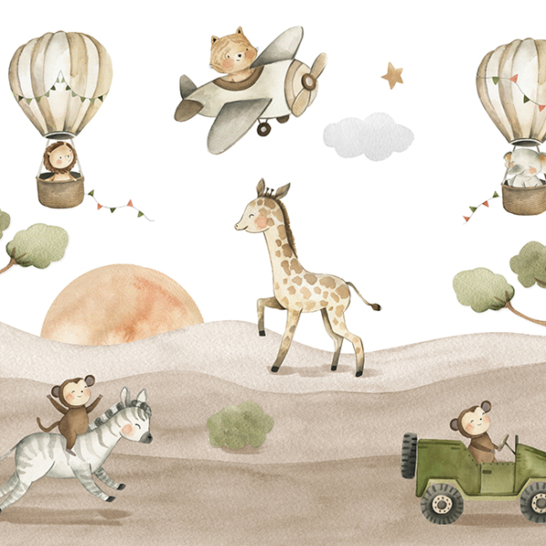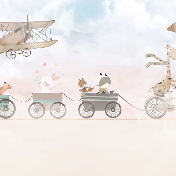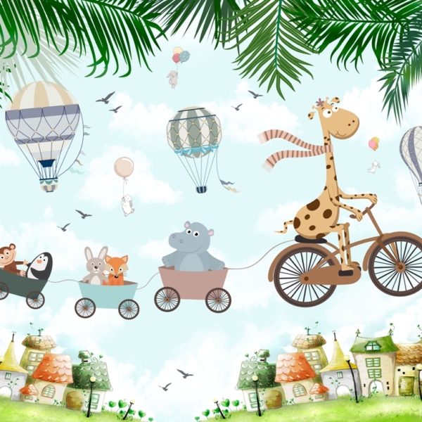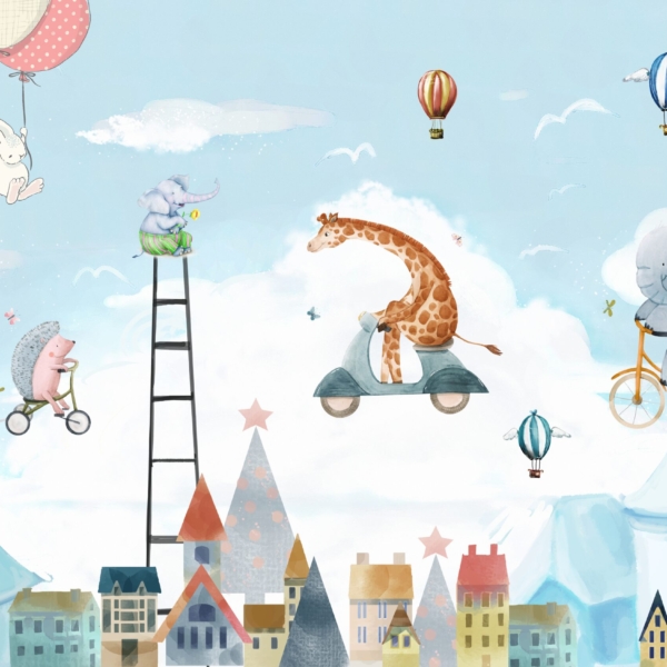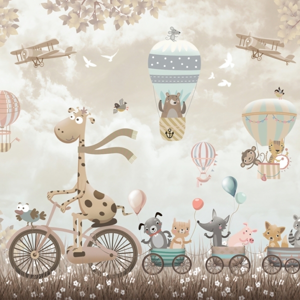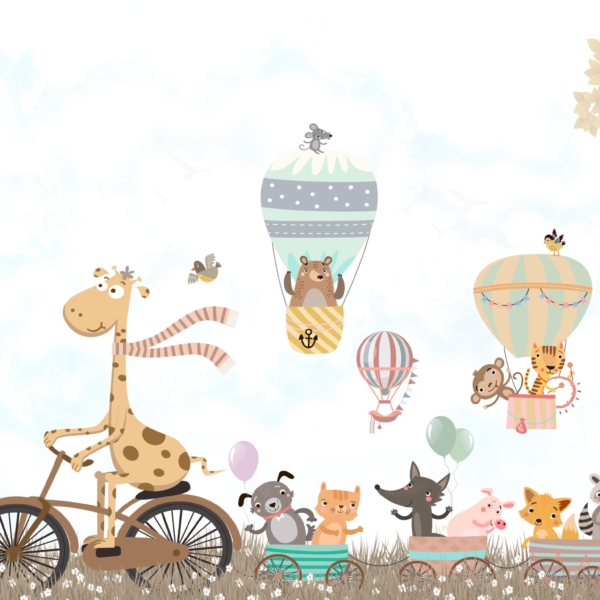- Ref. proizvoda: 11906356571 Fototapeta savršena za dječju sobu. Može se koristiti prilikom uređenja prve sobe za bebu, kao i kada u sobi treba živjeti radosni predškolac. Dizajniran da bude prikladan i za djevojčice i za dječake. Prikazuje žirafu koja vozi bicikl i vuče vlak s radosnim životinjama. Iznad njih lete baloni i avioni. Fototapete dizajnirane su prigušenim, univerzalnim bojama. Zahvaljujući…