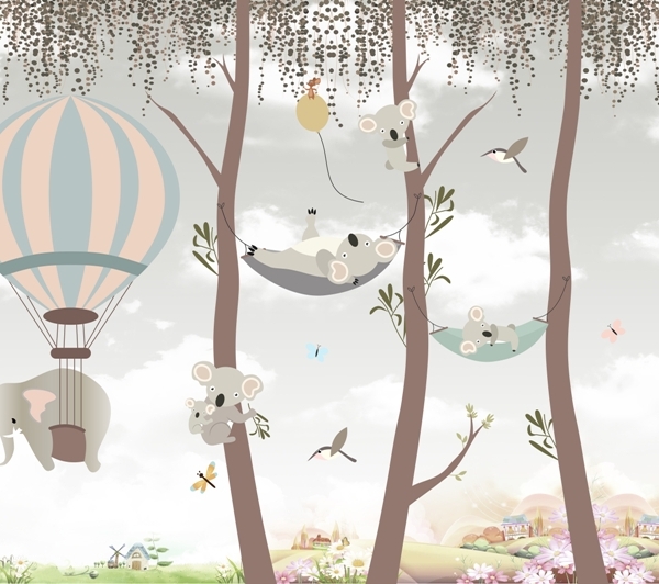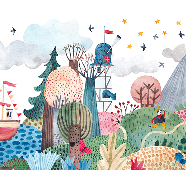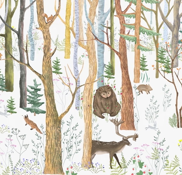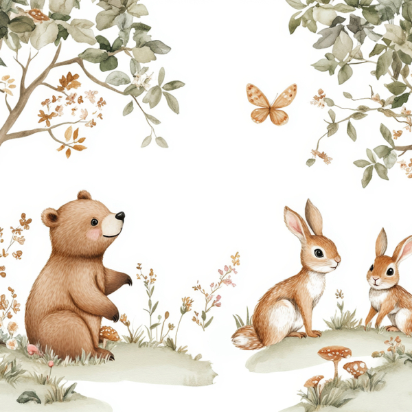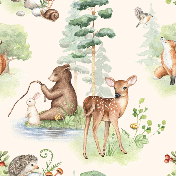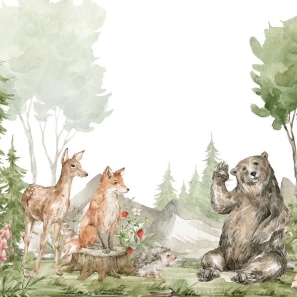 Također ćete pronaći zidne freske s medvjedićima, planinama, kitovima, šumom, cvijećem i drugim uzorcima koji će biti savršeni za dječju sobu.