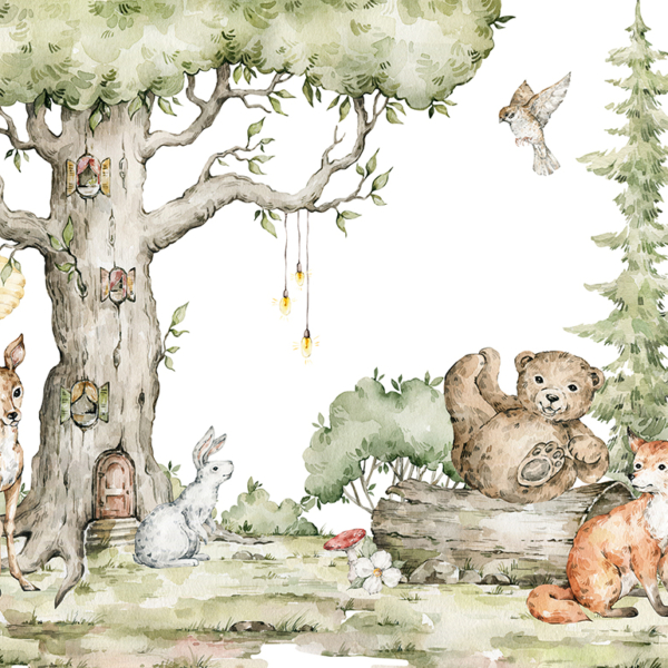 - Ref. proizvoda: 1456877518 Iznimno šarmantan mural s motivom šume savršen je izbor za svaku dječju sobu. Korištene boje su nježne, dominiraju smeđe, bež i zelene, zahvaljujući kojima se proizvod uklapa u svaki interijer. Životinje na muralu privlače pažnju i zasigurno će se svidjeti djeci svih dobnih skupina. Važno je napomenuti da unatoč mnogim elementima koji bi mogli preplaviti, izgled cjeline…