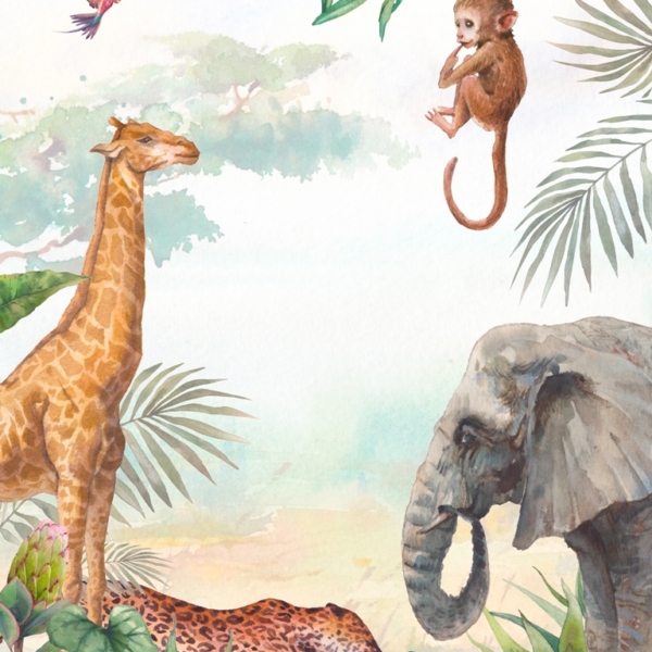 - Ref. proizvoda: 11401409741 Egzotični mural s okomitim tokom. Prikazuje životinje Afrike, uključujući slona, žirafu i majmuna. Čuva se u izražajnim, ali ne pretjerano intenzivnim bojama, zbog čega izgleda stvarno dobro. Bit će savršen za razne prostorije u kojima neće previše dominirati. Pogodno za dnevni boravak, vrlo će dobro funkcionirati i u dječjoj sobi. Vrijedno je posegnuti za njim prilikom uređenja…