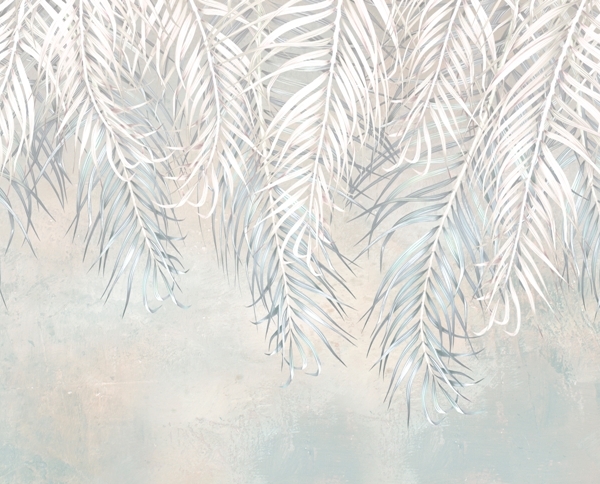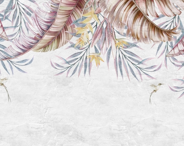 U ponudi imamo i mural koji prikazuje egzotično lišće u pastelnim bojama.