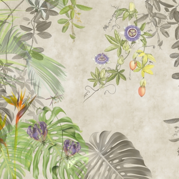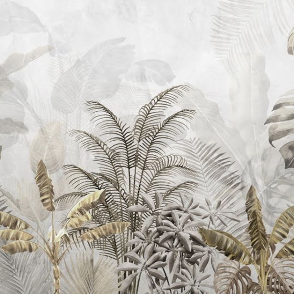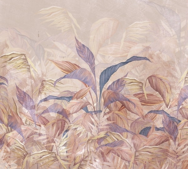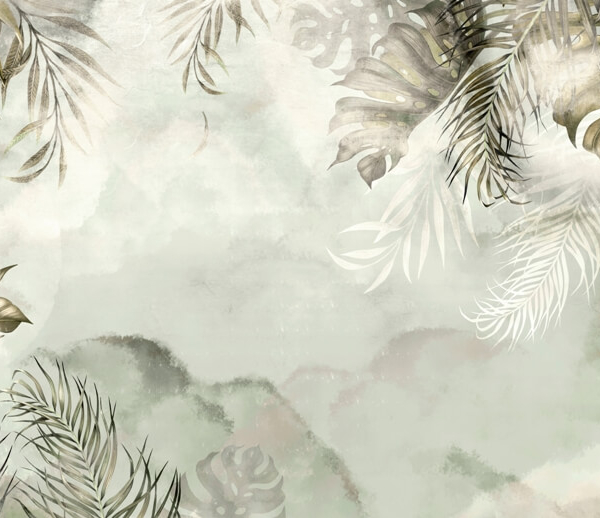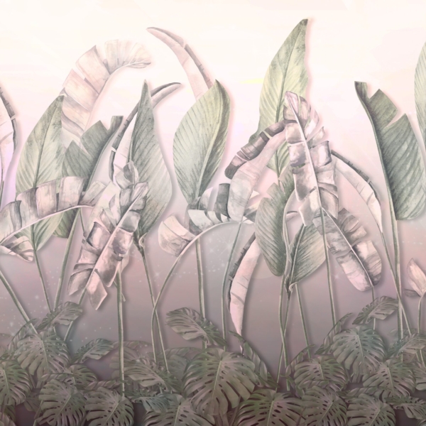 U ponudi imamo i mural koji prikazuje egzotično lišće u pastelnim bojama.