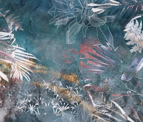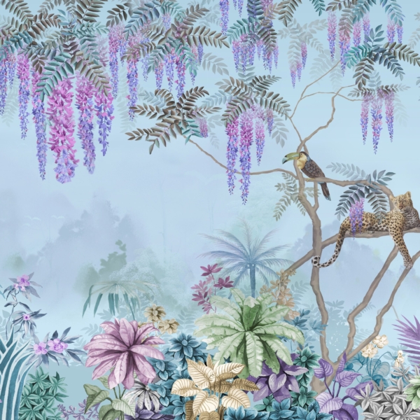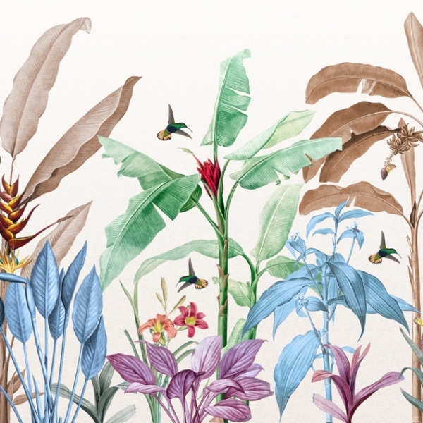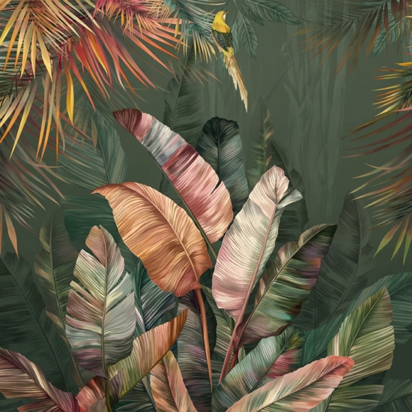 U ponudi imamo i mural koji prikazuje egzotično lišće u pastelnim bojama.