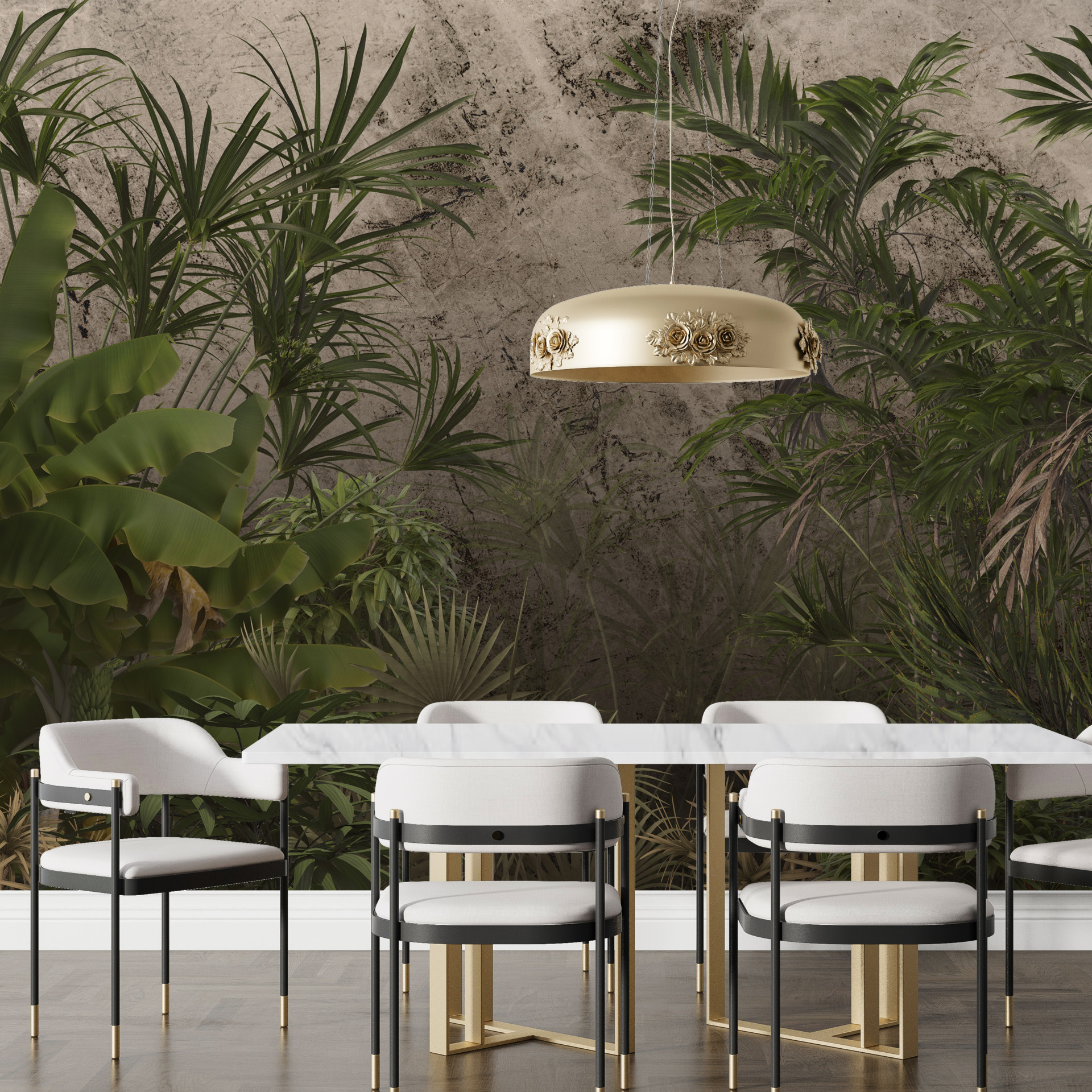 Fototapete “Zeleni tropi na sivoj pozadini” izrađene su od visokokvalitetnih materijala, što jamči trajnost i dobru kvalitetu slike.