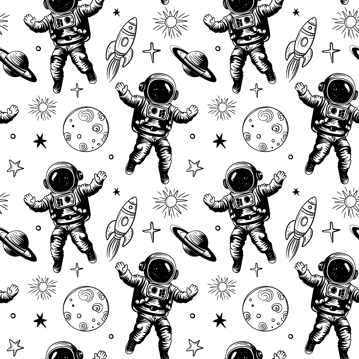Prenesite svoje dijete u fascinantan svijet međuplanetarnih ekspedicija foto tapetom “Astronauti u galaksiji”. Ovaj pažljivo dizajniran, crno-bijeli uzorak prikazuje hrabre astronaute, rakete, planete i zvijezde, stvarajući dinamičnu i avanturističku kompoziciju koja potiče maštu i potiče vas da otkrijete tajne svemira.