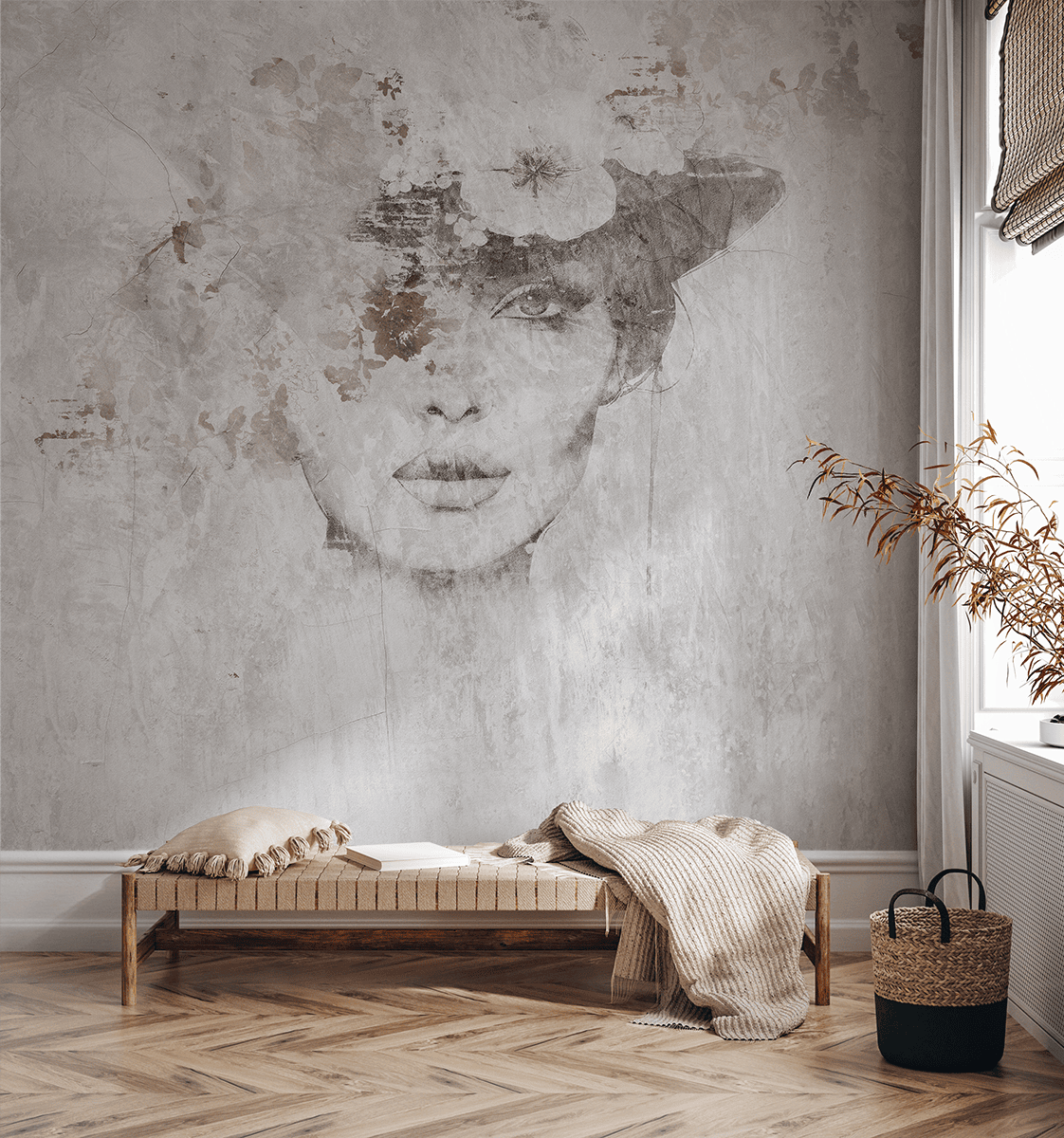 Unesite jedinstvenu atmosferu u svoj dom foto tapetama “Fade of Beauty”. Ovaj jedinstveni, umjetnički uzorak kombinira delikatnost portreta s prolaznošću cvjetnih motiva, stvarajući kompoziciju punu emocija i suptilne magije. Prigušene boje i senzualni prijelazi čine ove foto tapete savršenim izborom za moderne i klasične dizajne interijera.