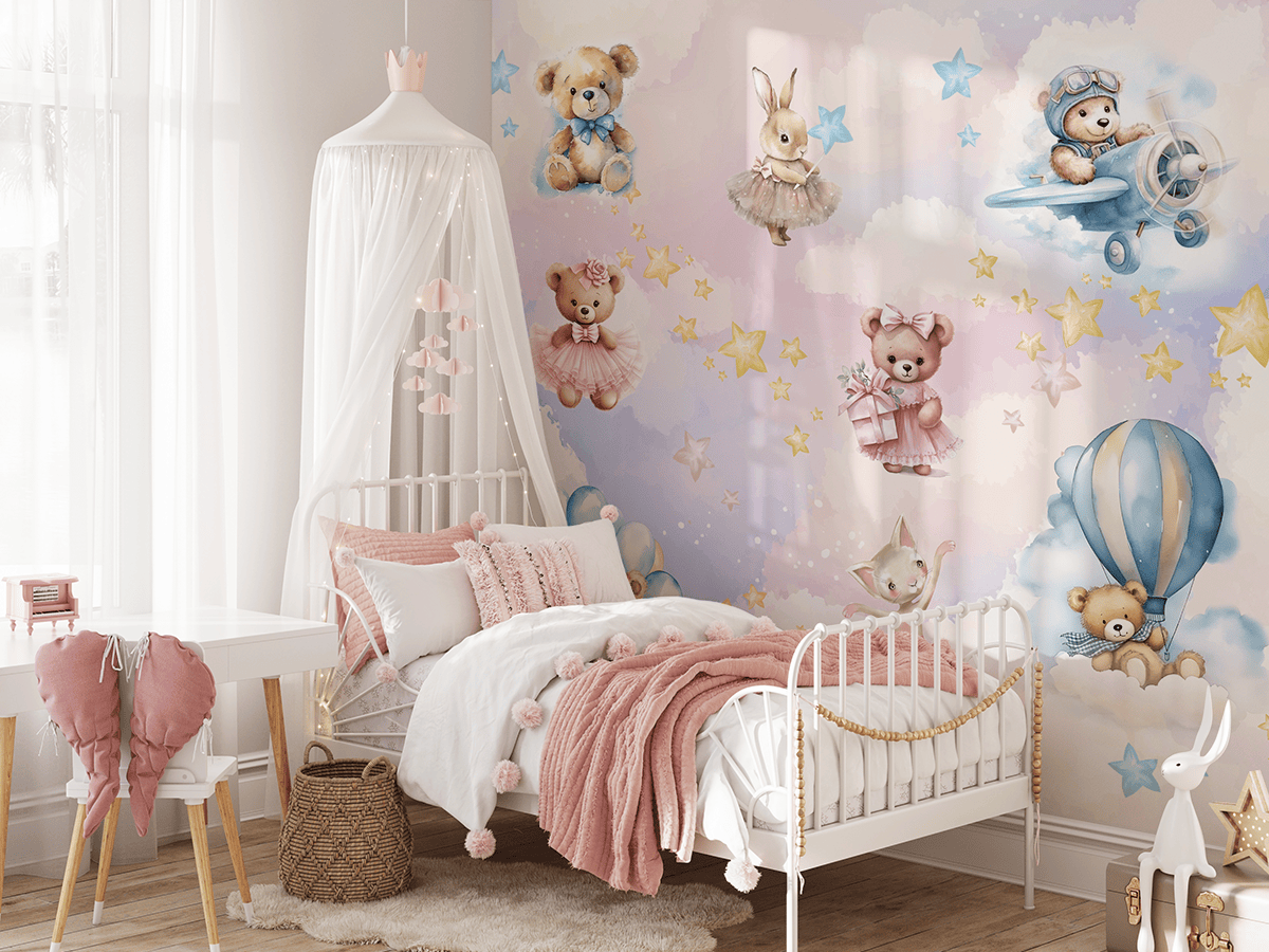 Unesite čarobnu atmosferu u dječju sobu foto tapetom “Čarobna kugla mališana”. Ova ilustracija, puna slatkih medvjedića, zečića, mačića i miševa u pastelnim bojama, stvara ugodnu i radosnu atmosferu koja potiče igru i sanjarenje. Nježni detalji i meke boje čine interijer toplim i punim dječje mašte.