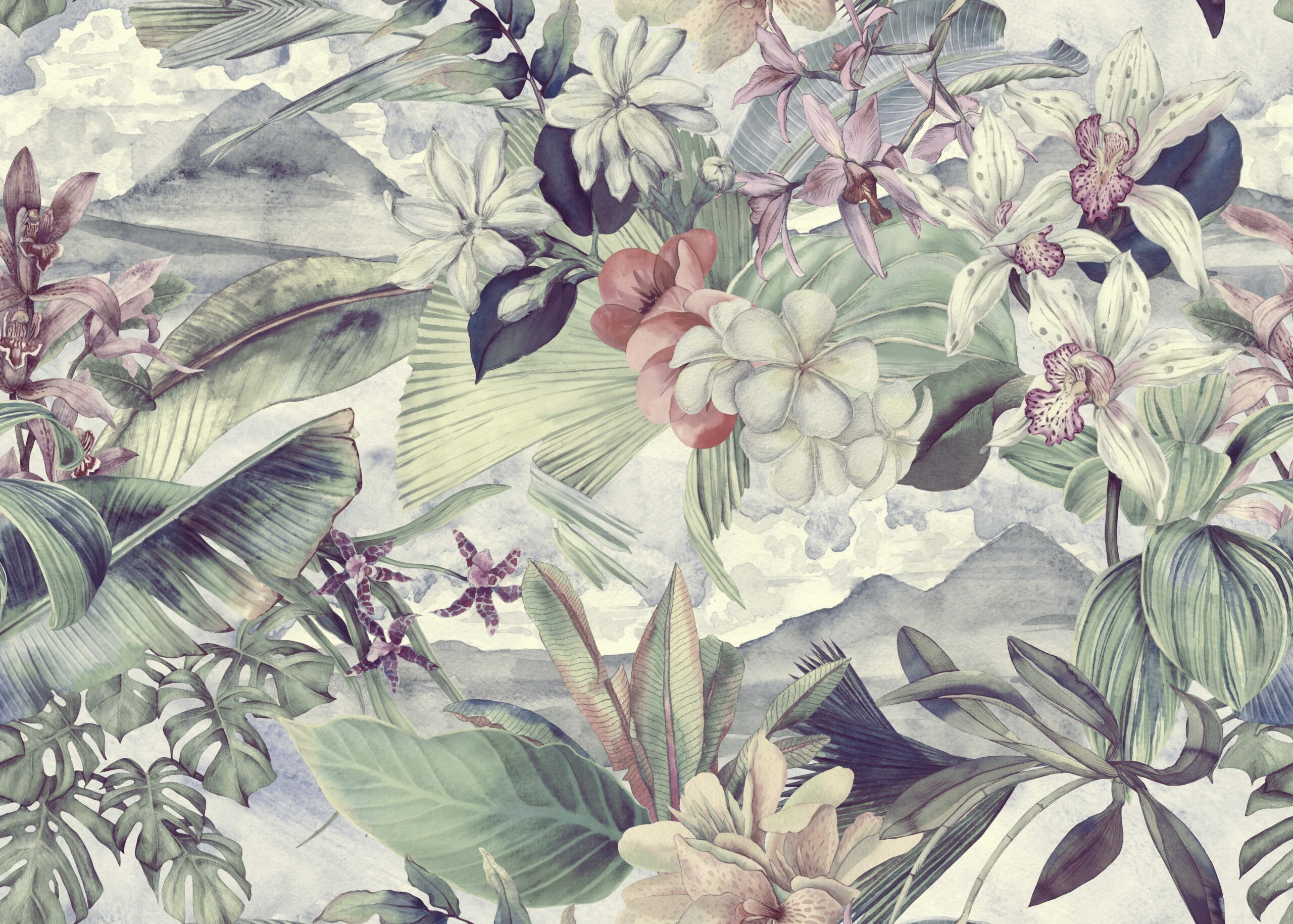 Unesite jedinstvenu atmosferu u svoj dom uz foto tapetu “Dah tropa”. Ovaj zamršeno izrađen uzorak s tropskim lišćem i cvijećem u suptilnim pastelnim bojama dočarava atmosferu egzotične džungle, dodajući prostoru svježinu i sklad. Nježni detalji i prirodna paleta boja savršeno se uklapaju u moderne i klasične aranžmane.