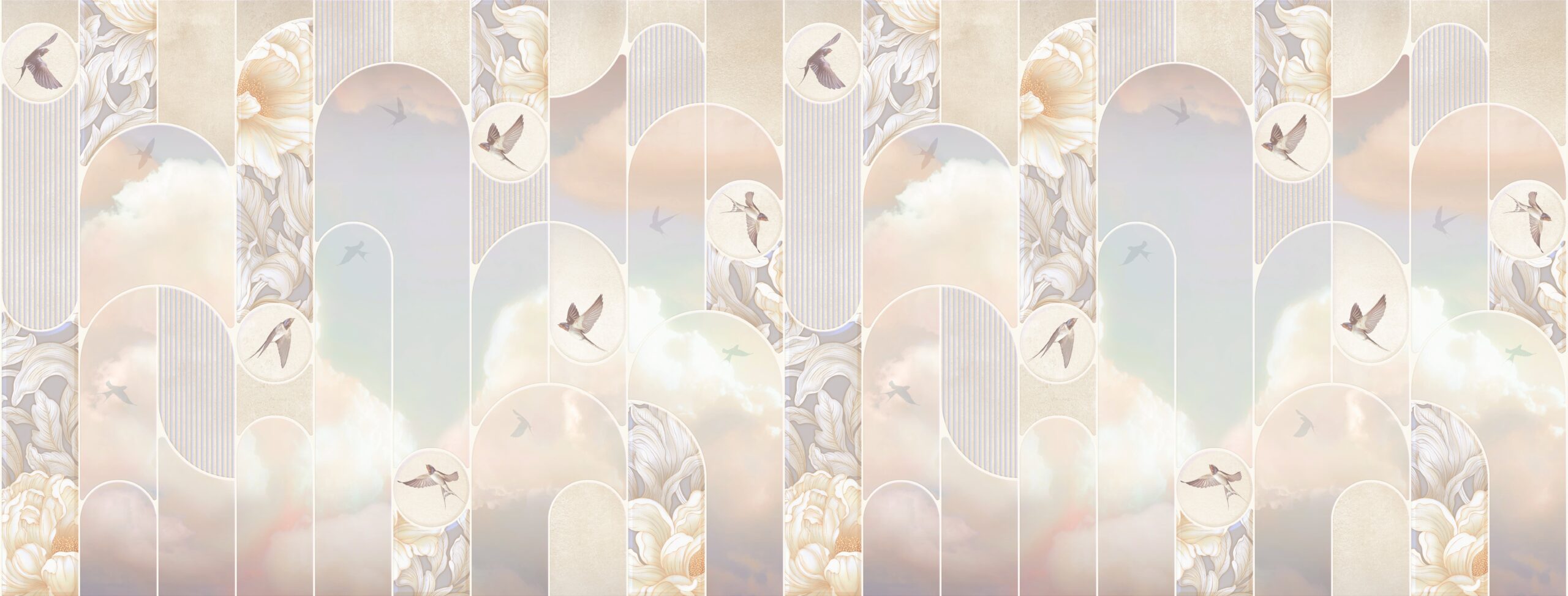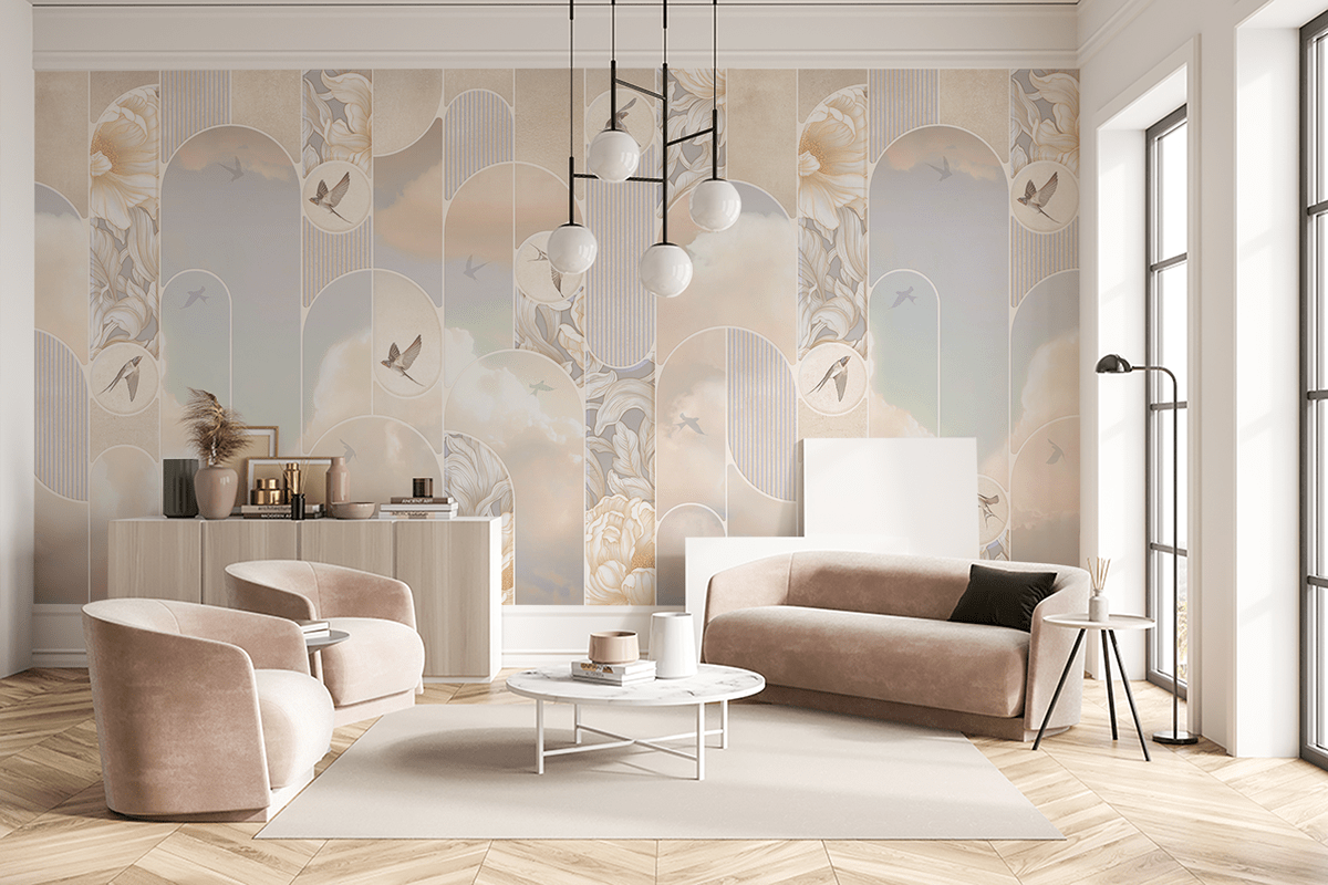 Otvorite svoj dom utjehi i lakoći uz foto tapetu “Dodir neba”. Ovaj nevjerojatno nježan uzorak, inspiriran oblacima i pastelnim nebom, unosi osjećaj mira, prostranosti i sanjive atmosfere u interijer. Svijetli tonovi, meki prijelazi boja i suptilna kompozicija stvaraju efekt koji opušta osjetila i umiruje um.