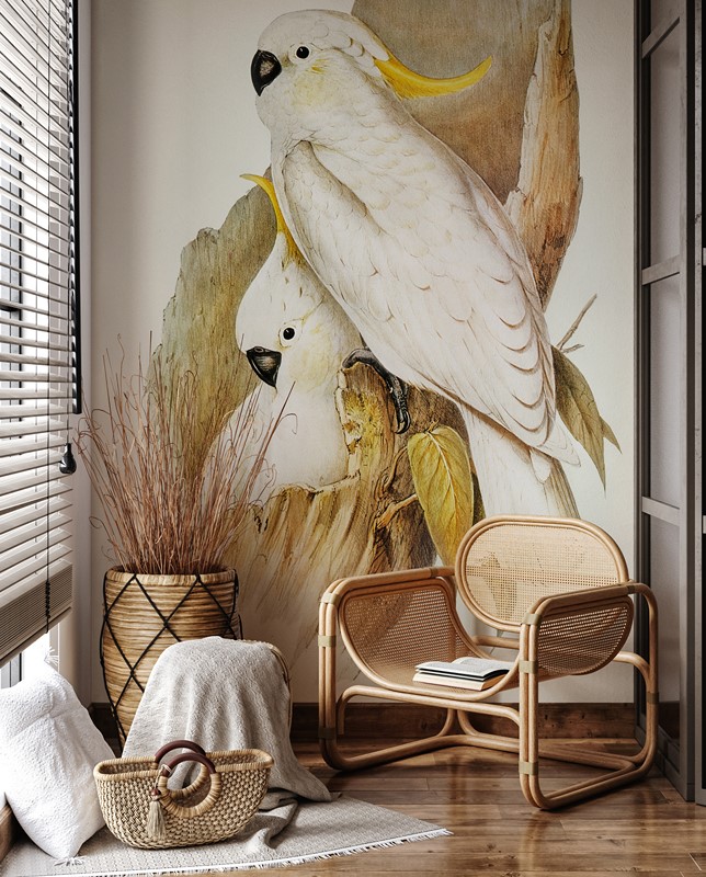 Oznake Egzotične ptice, golubrići, papige, par, ptičji par, tapete za dječju sobu, toplina, Tropski zidni mural, ukrašavanje zidova
