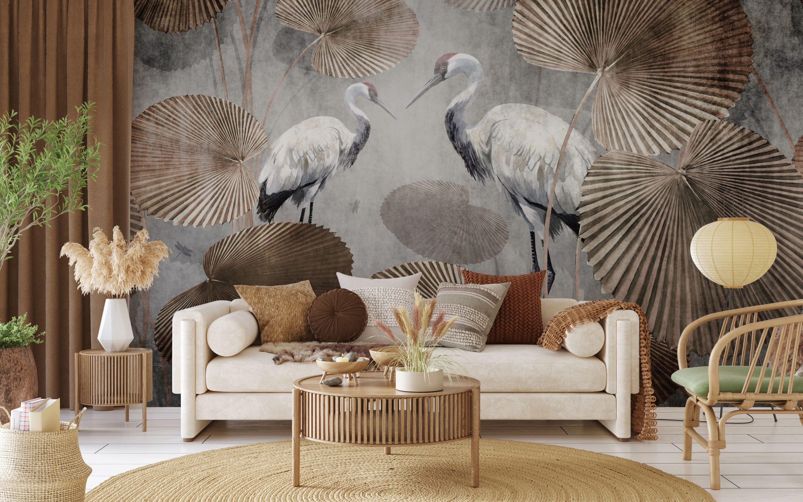 Foto tapeta “Harmonija ždralova” – orijentalna elegancija, prirodna simbolika i bezvremenski mir u vašem interijeru