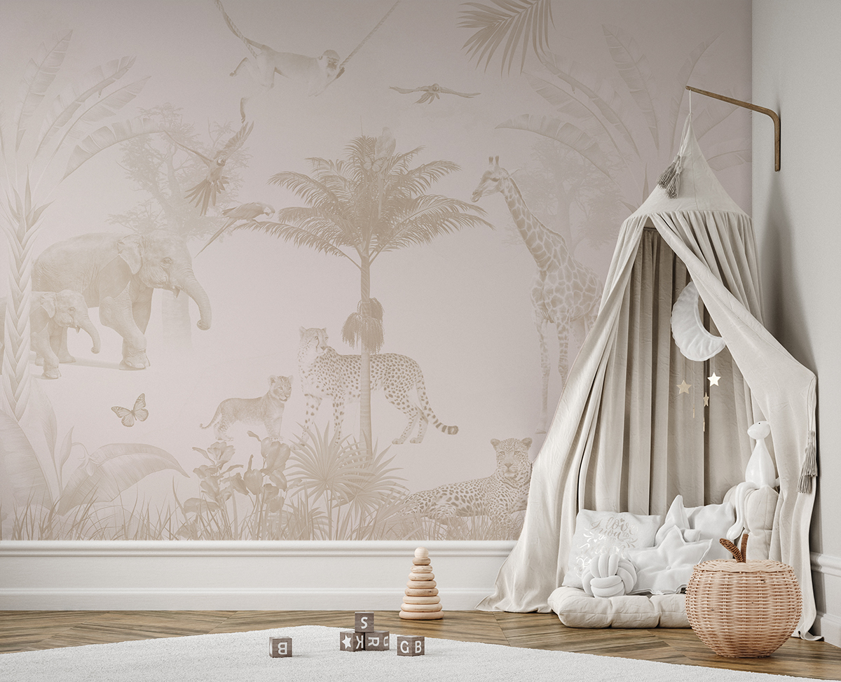 Unesite toplinu egzotične prirode u svoj prostor kompozicijom “Harmonia Safari”. To je nježna, umjetnička ilustracija inspirirana afričkom savanom, gdje se veličanstveni slonovi, dostojanstvene žirafe, okretni leopardi i šarene ptice susreću među bujnom tropskom vegetacijom. Uređena u bež i sepija tonovima, odiše mirom, lakoćom i prirodnom elegancijom.