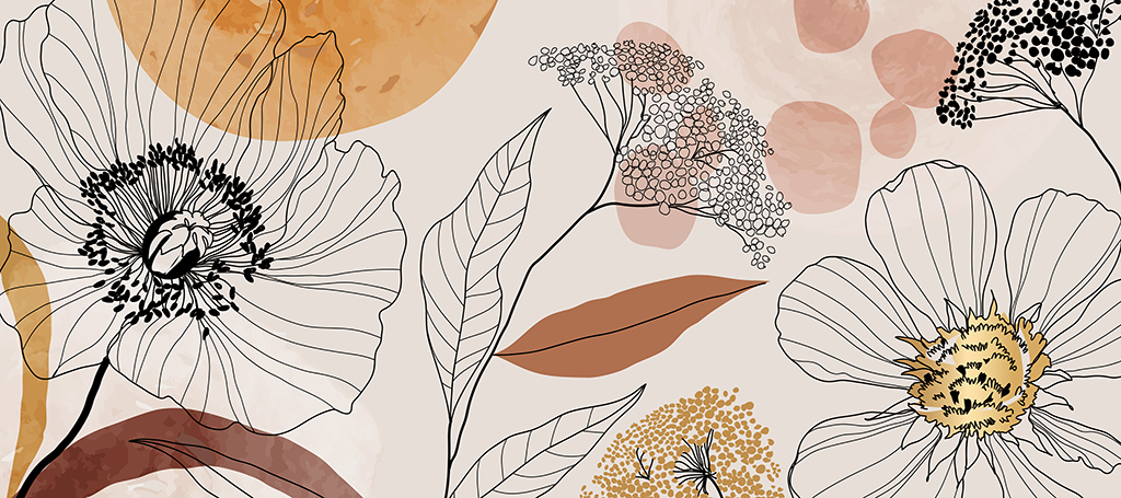 Ova fototapeta kombinira modernu grafiku s prirodnim cvjetnim motivom. Nježne konture cvijeća na svijetloj pozadini unose mir i sklad u interijer, dajući mu lakoću i suptilnu eleganciju.