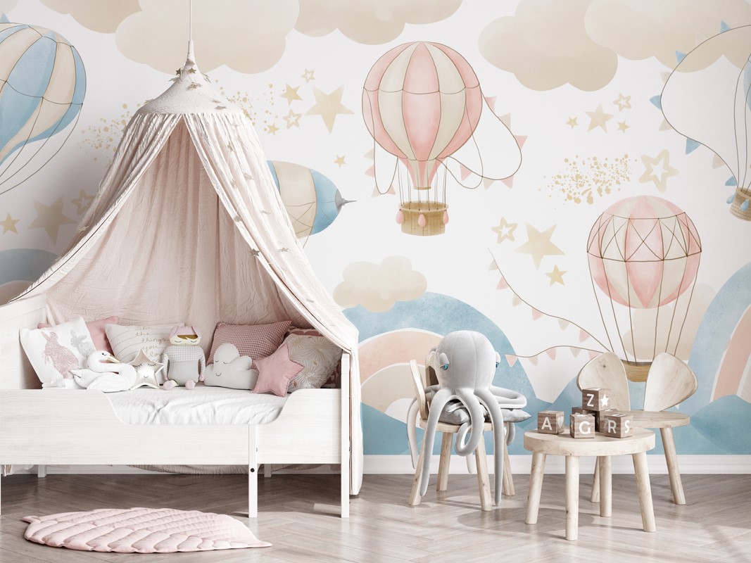 Foto tapeta “Let balona u oblacima” jedinstvena je zidna dekoracija koja u vaš interijer unosi osjećaj slobode, lakoće i sanjive avanture. Kompozicija prikazuje balone kako lebde među mekim, pahuljastim oblacima, nježno osvijetljenim duginim zrakama. Lakoća i pastelna paleta boja stvaraju umirujuću, atmosfersku pozadinu – savršenu za dječju sobu. Ova foto tapeta namijenjena je onima koji cijene estetski minimalizam u kombinaciji s daškom slobode – u vaš interijer unosi auru optimizma, prostora i sanjive atmosfere.