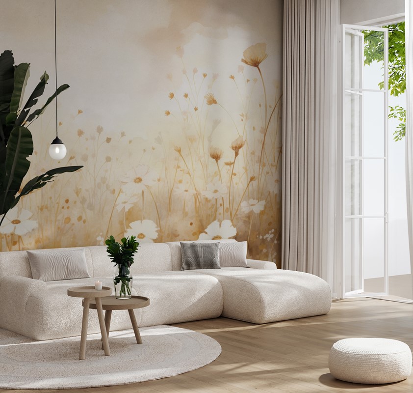 Foto tapeta “Livada u zlatnom sjaju” zidna je dekoracija koja u interijer unosi toplinu, slikarsku eleganciju i poetsku atmosferu prirode. Motiv prikazuje poljsku livadu ujutro – cvjetove malih biljaka, trave i nježne žitarice okupane mekim zlatnim svjetlom. Cjelina stvara efekt suptilnog, filmskog chiaroscura i umjetničke dubine, evocirajući atmosferu mira, nostalgije i sklada.