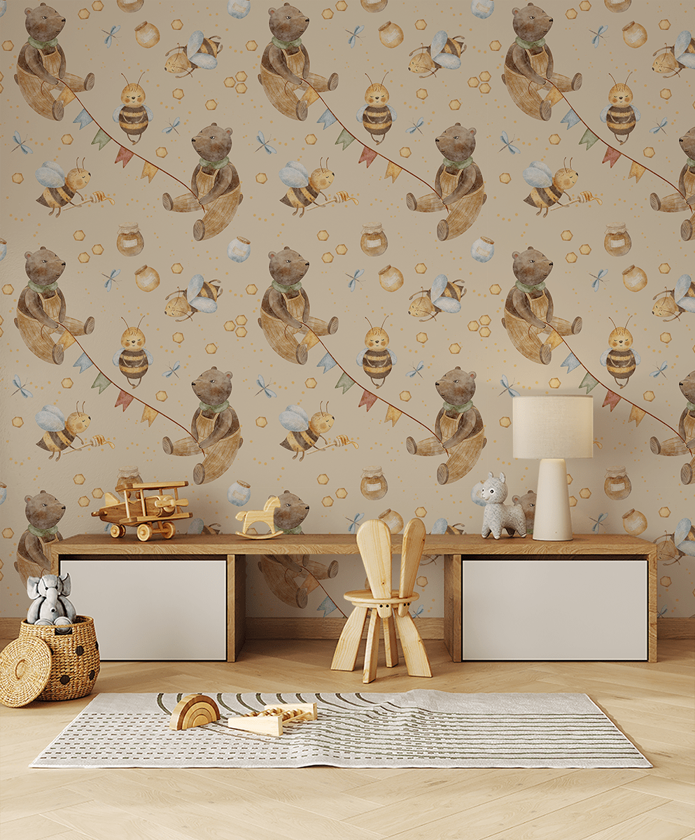 Foto tapeta “Medvjedić i med” – Bajkovit svijet avantura, slatkiša i dječje mašte