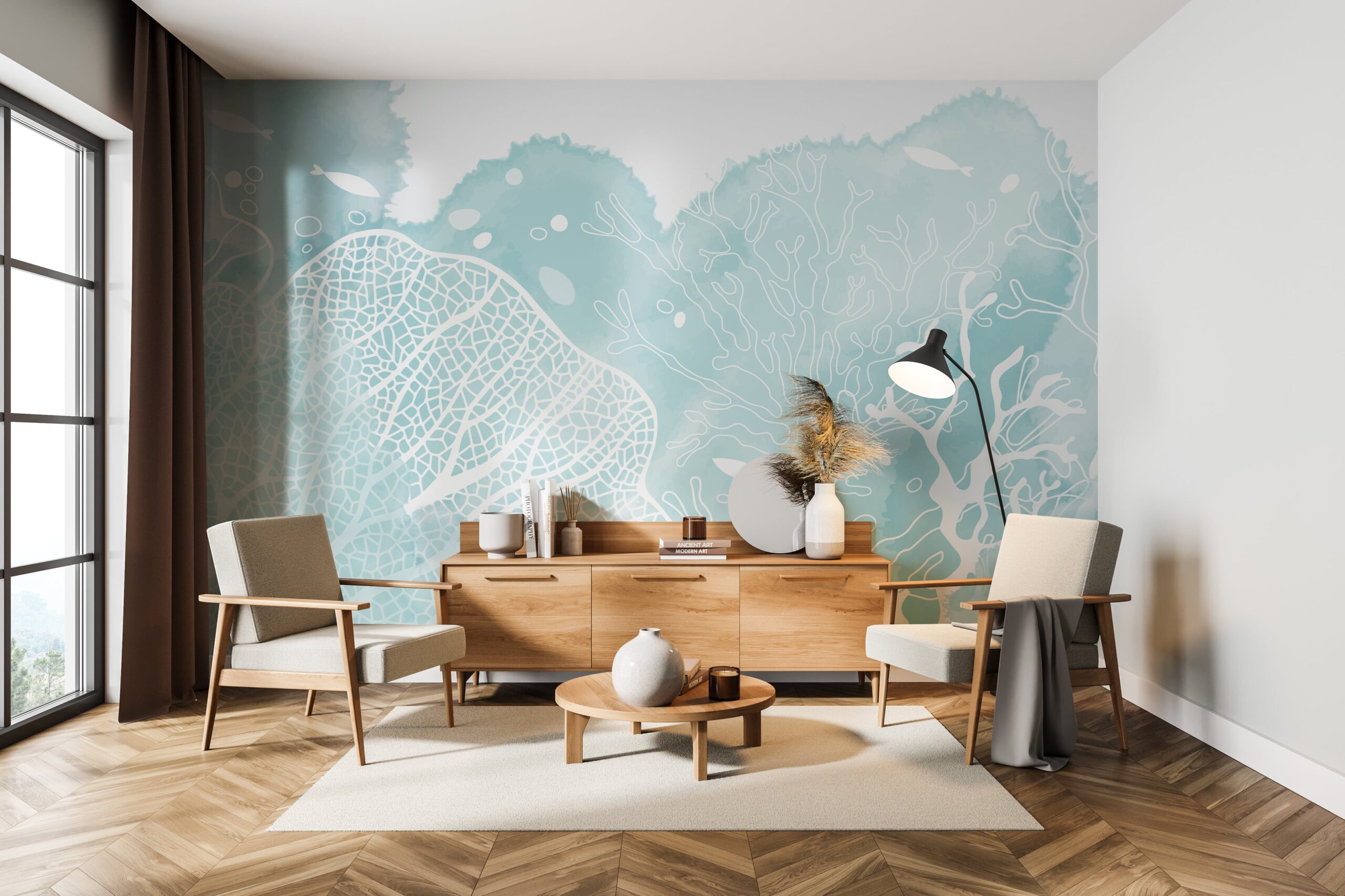 Unesite jedinstvenu atmosferu u svoj dom foto tapetom “Morska magla”. Ovaj svijetli, pastelni uzorak, inspiriran podvodnim svijetom koralja i morske pjene, stvara atmosferu mira i svježine, savršenu za opuštanje i spokoj. Nježne, valovite linije i prigušena paleta plavih tonova savršeno se uklapaju u moderne i klasične dizajne interijera.