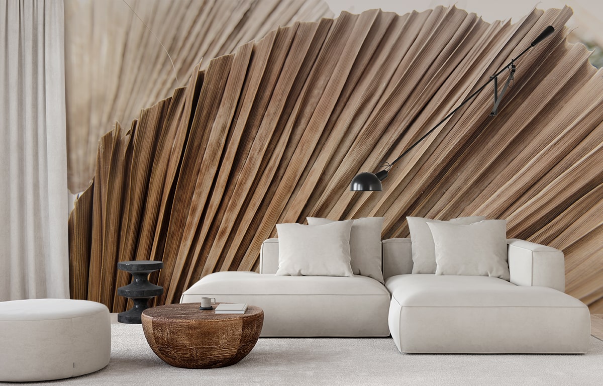Otkrijte ljepotu skrivenu u jednostavnosti uz foto tapetu “Sušene lepeze prirode”. Ovaj umjetnički motiv inspiriran prirodom prikazuje precizne detalje suhog palminog lišća, koje se, poput nježnih lepeza, širi u skladnom rasporedu. Njihova struktura, tekstura i topla paleta bež i smeđih tonova stvaraju jedinstvenu atmosferu spokoja i bezvremenske elegancije.