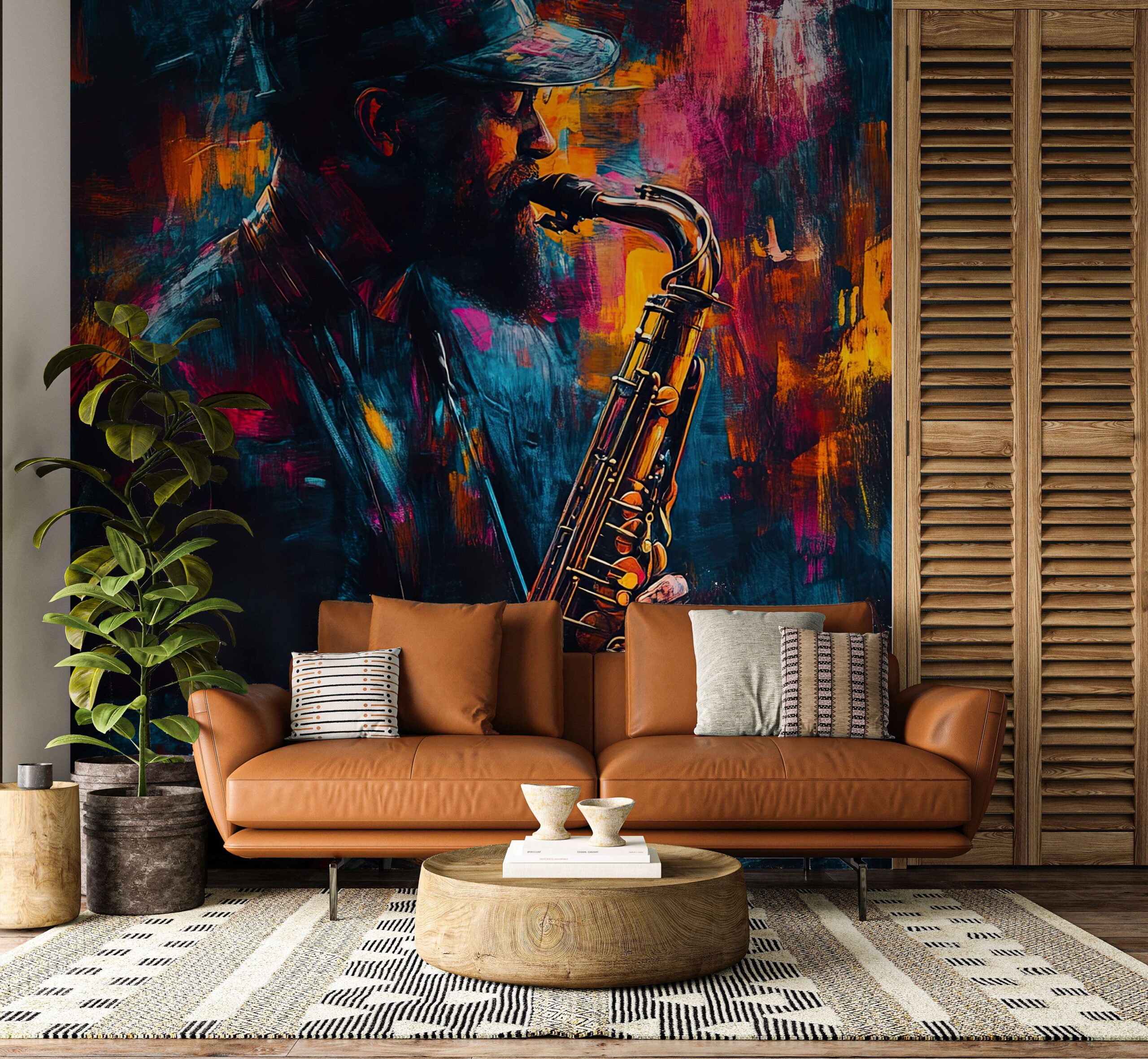 Unesite jedinstvenu atmosferu u svoj interijer uz foto tapetu “Ritmovi duše”. Ova umjetnička kompozicija, puna živih boja i upečatljivih kontrasta, obuhvaća magiju jazza i strast glazbenika apsorbiranog zvukom saksofona. Intenzivne boje i apstraktni oblik savršeno će nadopuniti i moderne i eklektične aranžmane.