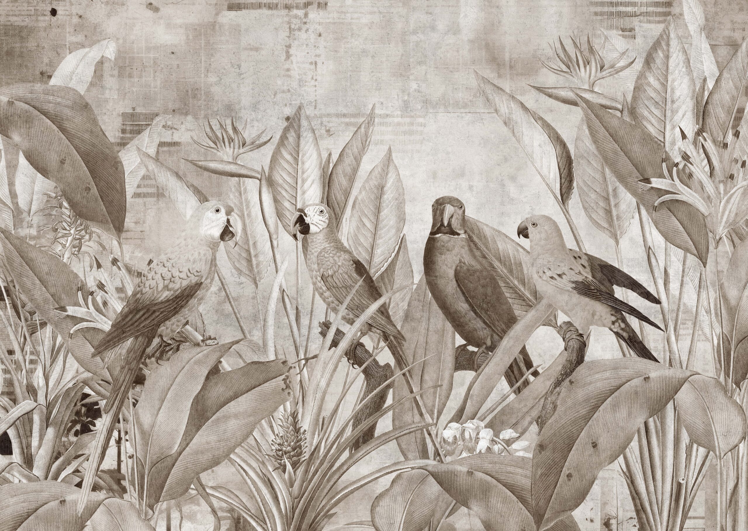 Unesite jedinstvenu atmosferu u svoj dom uz foto tapetu “Paradise Meeting”. Ovaj raskošni motiv papiga u sepia tonovima okružen bujnom tropskom vegetacijom evocira atmosferu egzotične džungle, dodajući toplinu i prirodnu eleganciju prostoru. Precizni detalji ptica i lišća savršeno se uklapaju u klasične i moderne dizajne interijera.