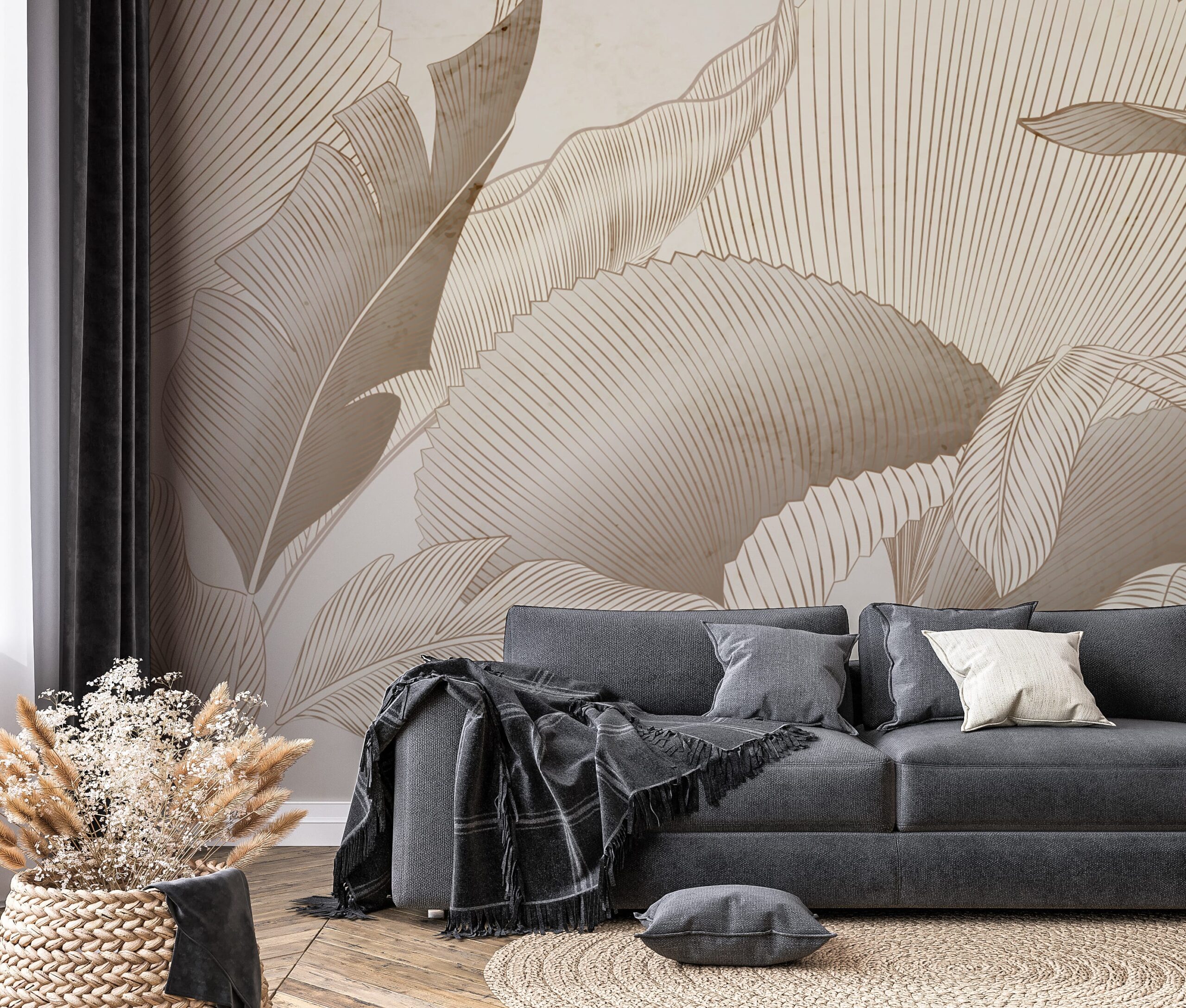 Foto tapete “Siluete lišća” – Suptilna elegancija, prirodni dizajn i jedinstveno uređenje interijera