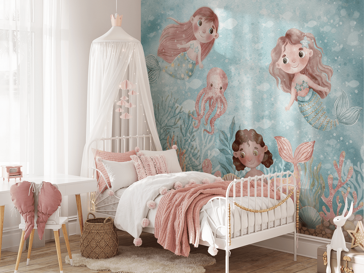Foto tapeta je više od pukog ukrasa – to je poziv na čarobnu morsku priču koja svaki dan donosi osmijeh i čini dječju sobu njihovim omiljenim mjestom na svijetu.