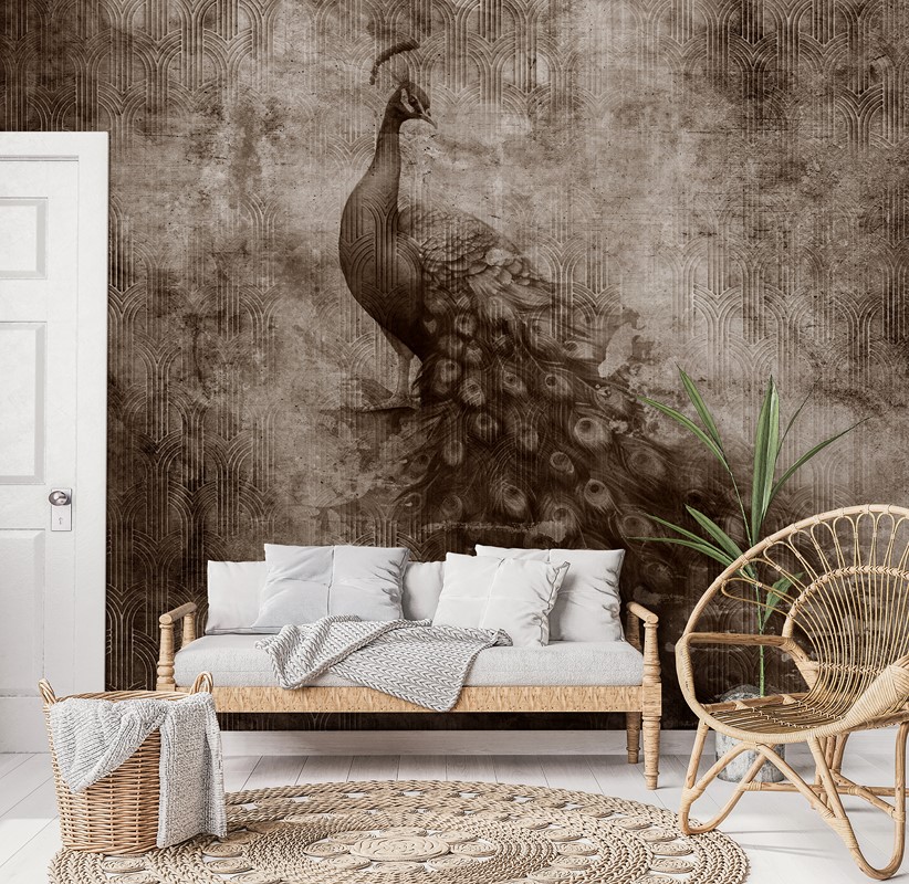 Vintage zidna mural s paunom jedinstvena je zidna dekoracija koja kombinira umjetnički retro šarm s prirodnom ljepotom paunovog pera. Suptilni detalji i prigušene boje unose klasičnu eleganciju i toplu atmosferu u interijer, savršen za dnevni boravak, spavaću sobu ili radnu sobu. Ovaj motiv privlači pogled i stvara impresivnu središnju točku aranžmana, kombinirajući vintage stil s prirodom.