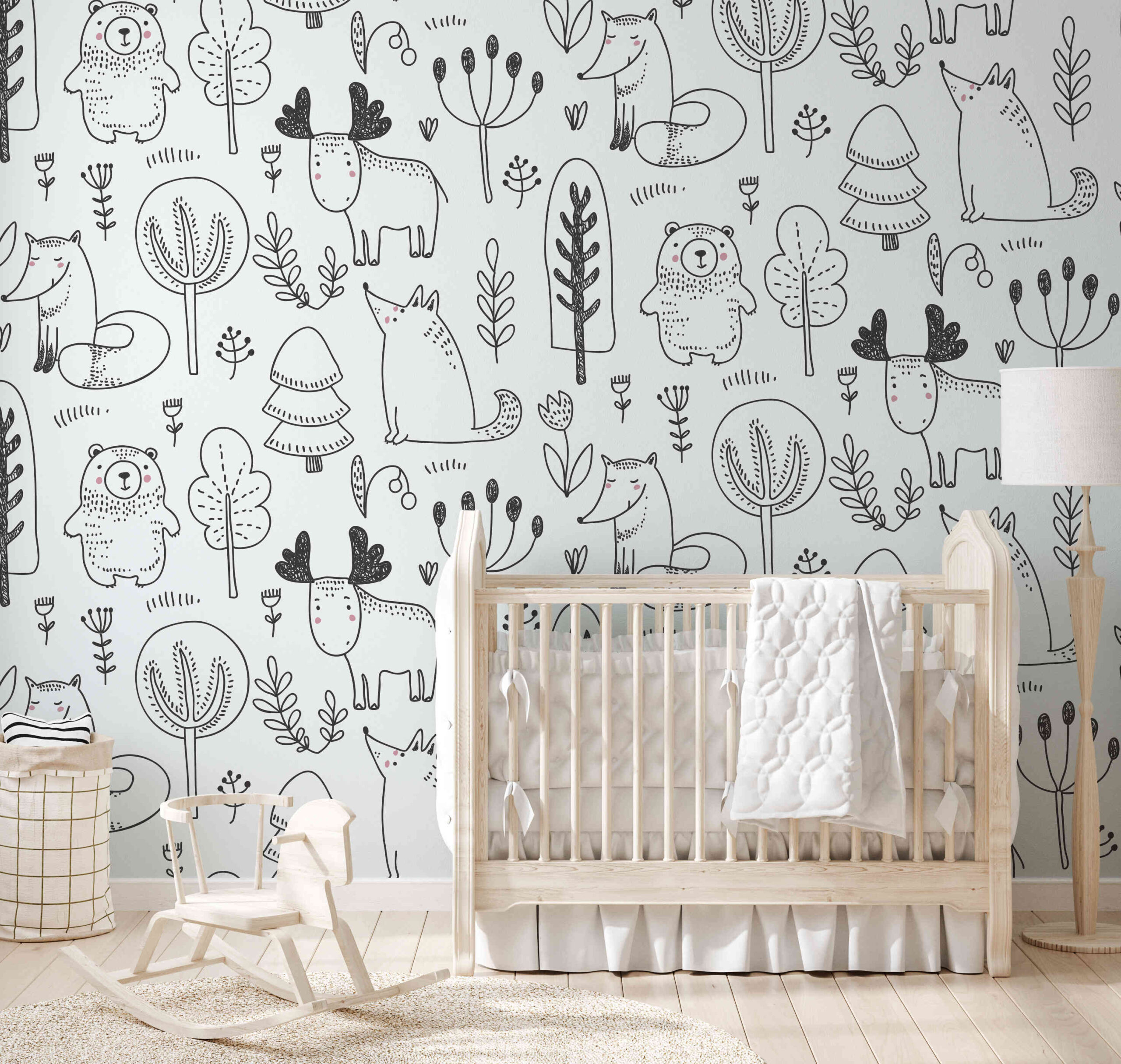 Pozovite preslatke plišane medvjediće, lisice i losove u svoju sobu foto tapetom “Šumske plišane igračke”. Ovaj zabavni, ručno crtani uzorak u crno-bijeloj boji s nježnim ružičastim naglascima prenijet će vas u šumski svijet pun topline i prijateljstva. Jednostavni i slatki likovi učinit će interijer ugodnim i punim dječje radosti.