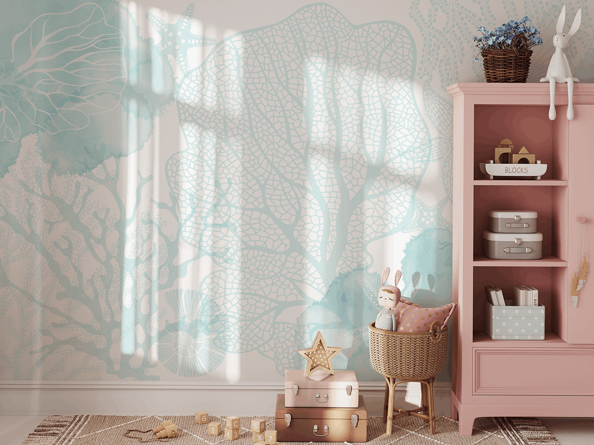 Unesite jedinstvenu atmosferu u svoj dom uz foto tapetu “Tajne oceana”. Ovaj suptilni, akvarelni uzorak inspiriran koraljnim grebenima i morskom vegetacijom prenosi vas u čarobne dubine oceana, dodajući svježinu i sklad prostoru. Nježne nijanse plave i suptilni detalji koralja i morskih zvijezda stvaraju kompoziciju koja se savršeno uklapa u moderne, skandinavske i klasične aranžmane.