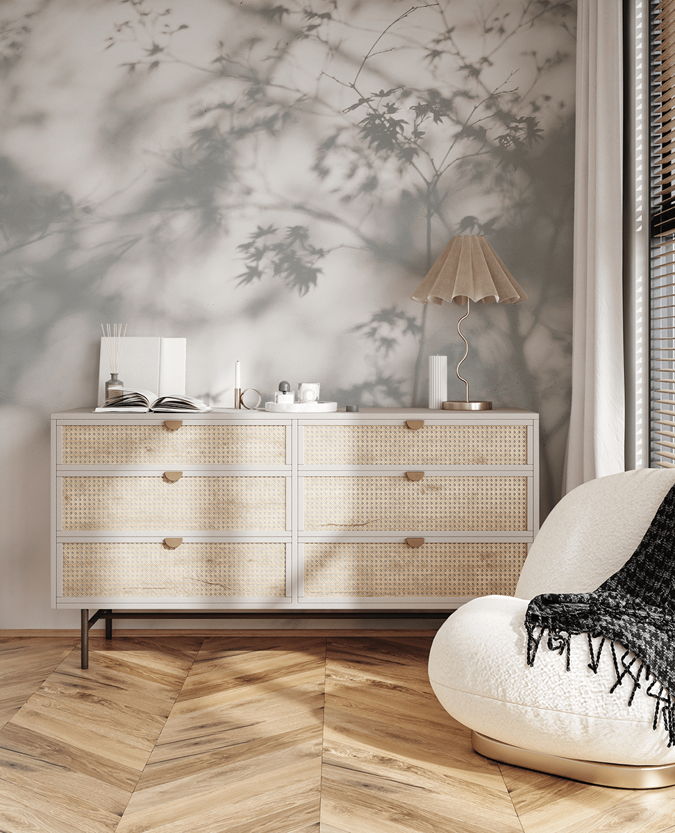 Unesite jedinstvenu atmosferu u svoj dom uz foto tapetu “Tišina u sjeni”. Prekrasan, prigušen uzorak s nježnim sjenama lišća stvara efekt pun mira i harmonije, savršeno se slažući s minimalističkim i prirodnim aranžmanima. Korištenje suptilnih nijansi sive i bijele čini da foto tapeta unese osjećaj lakoće u interijer, potičući opuštanje i odmor.