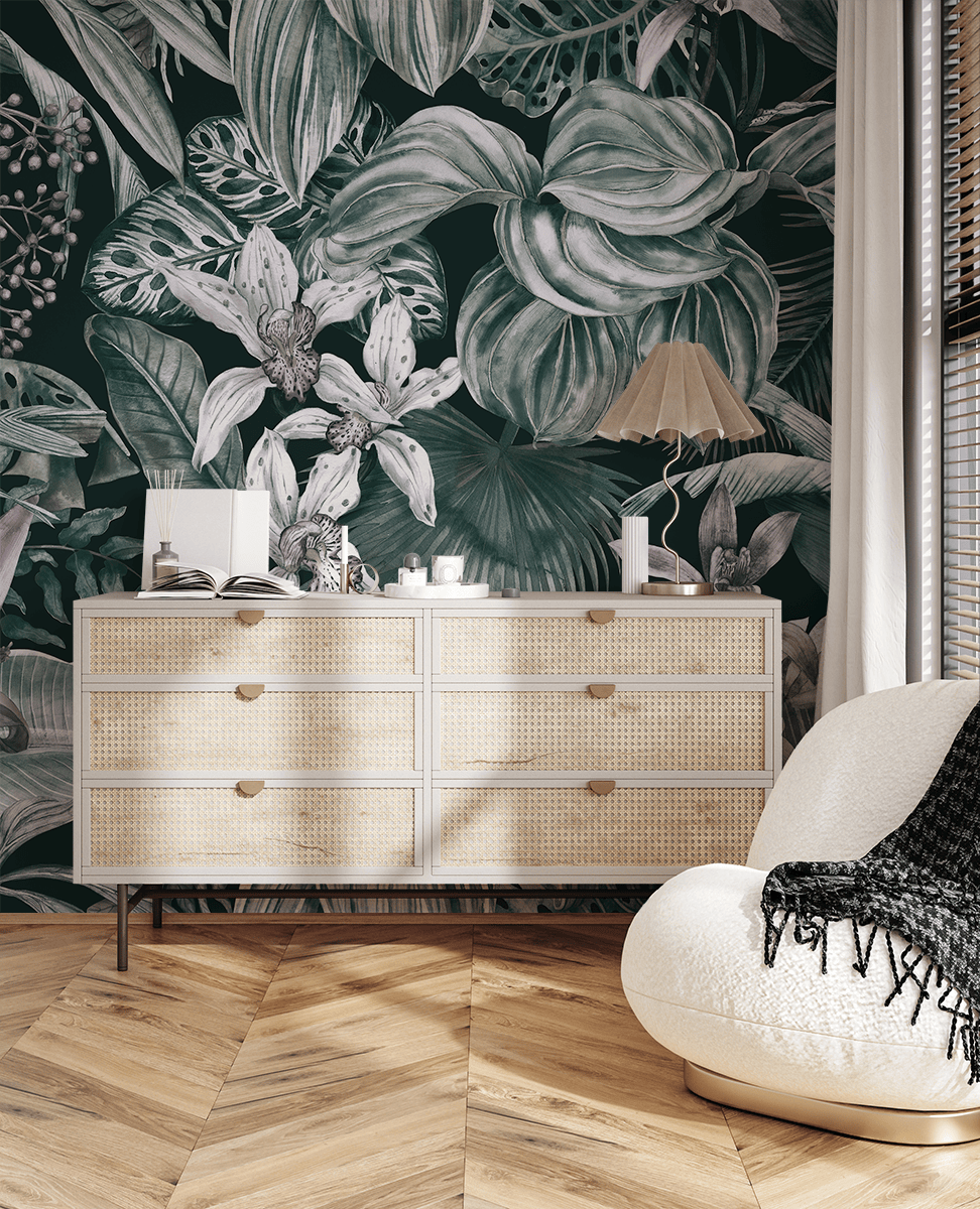 Foto tapeta “Tropical Whisper” – egzotična elegancija, botanički sklad i senzualna dubina prirode