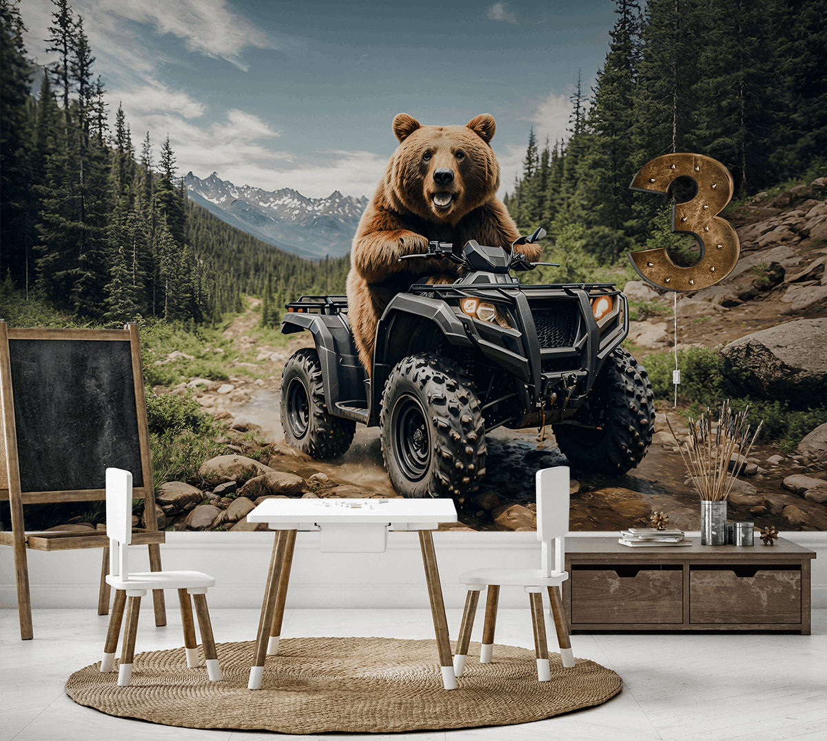 Neka “Turbo Medvjedić” donese puno radosti i zabave u dječju sobu! Ovaj veseli medvjedić na četverokotačnom vozilu savršena je slika za male istraživače koji vole avanture i aktivnosti na otvorenom. Šarene i energične grafike potaknut će maštu i učiniti svaki dan posebnim.