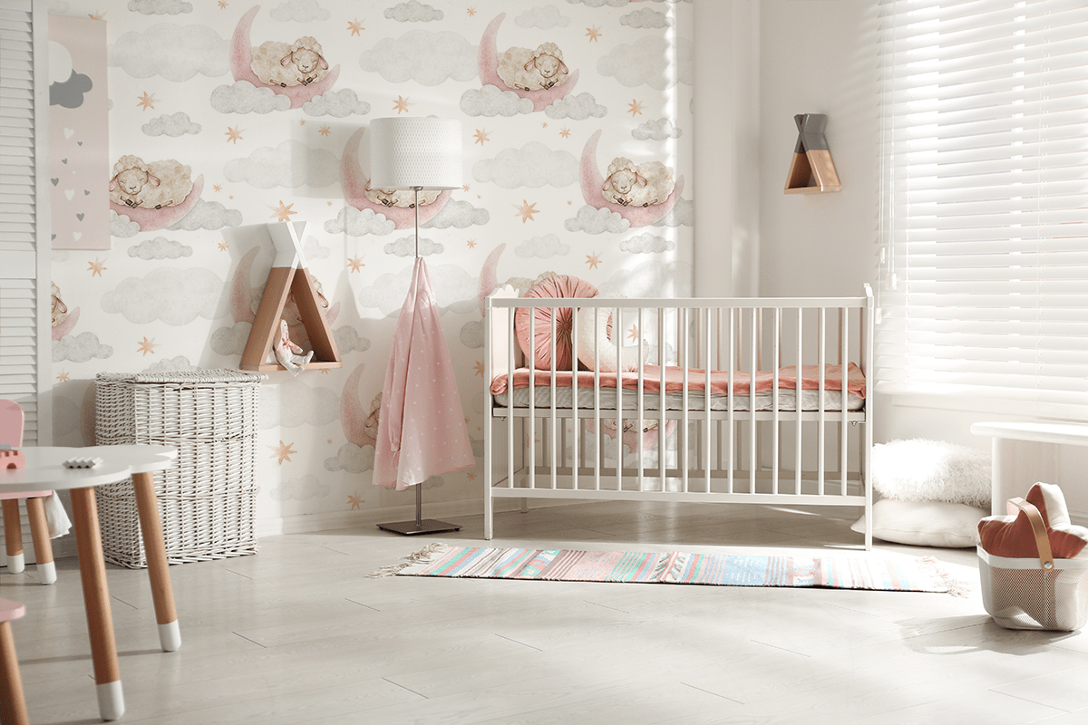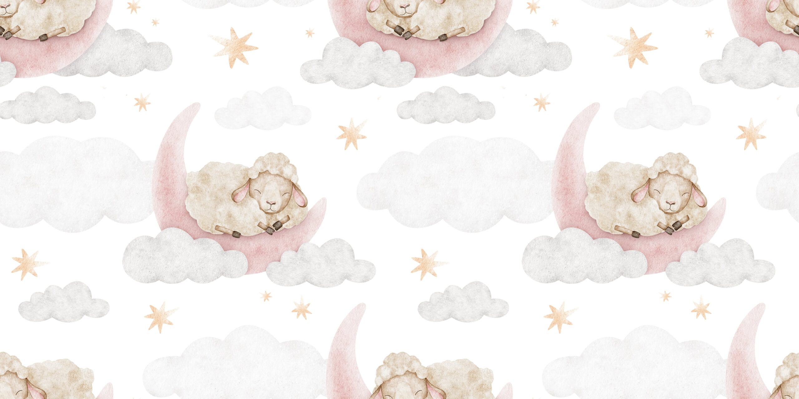 Tapeta “Uspavana ovčja zemlja” – umirujući svijet snova, mekih oblaka i dječje mašte