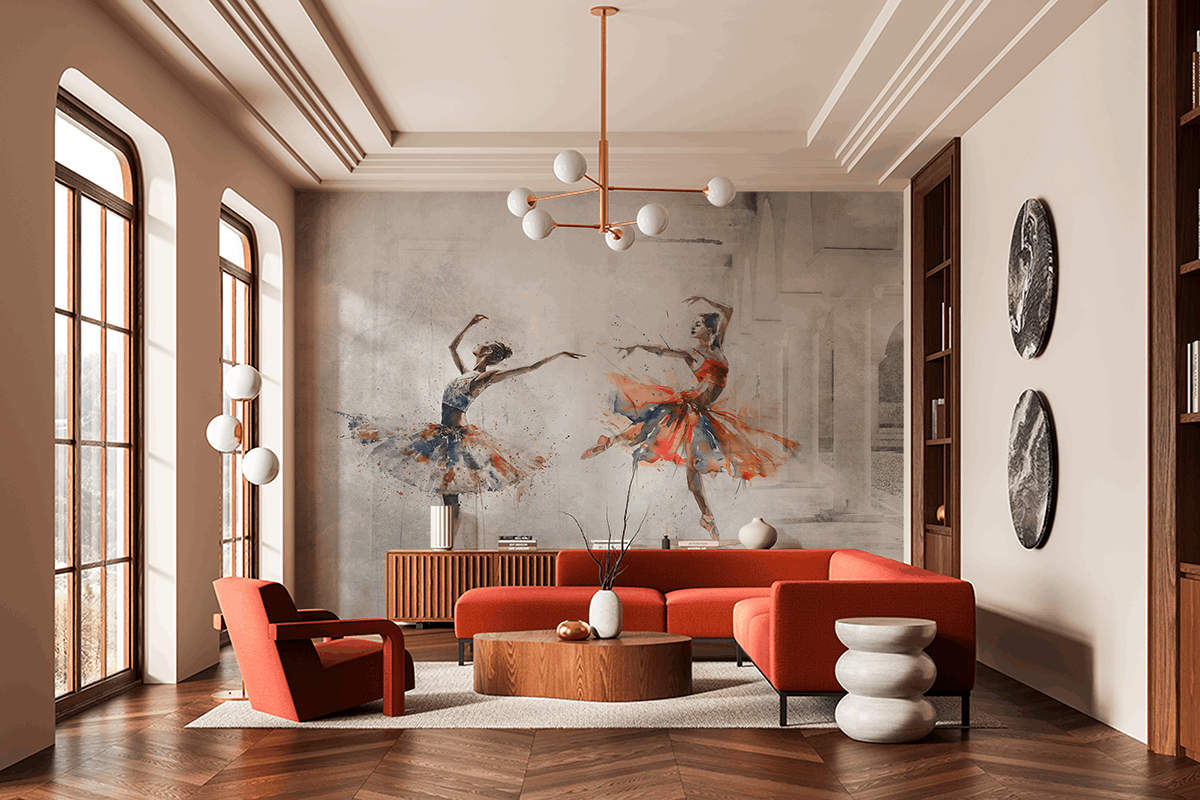 Ovo je izvrstan izbor za ljude koji cijene umjetnost, pokret i sofisticiranu estetiku, savršeno se uklapajući u moderne i klasične aranžmane. Fototapeta će istaknuti jedinstvenost dnevnog boravka, studija ili umjetničkog prostora, unoseći sklad i lakoću.