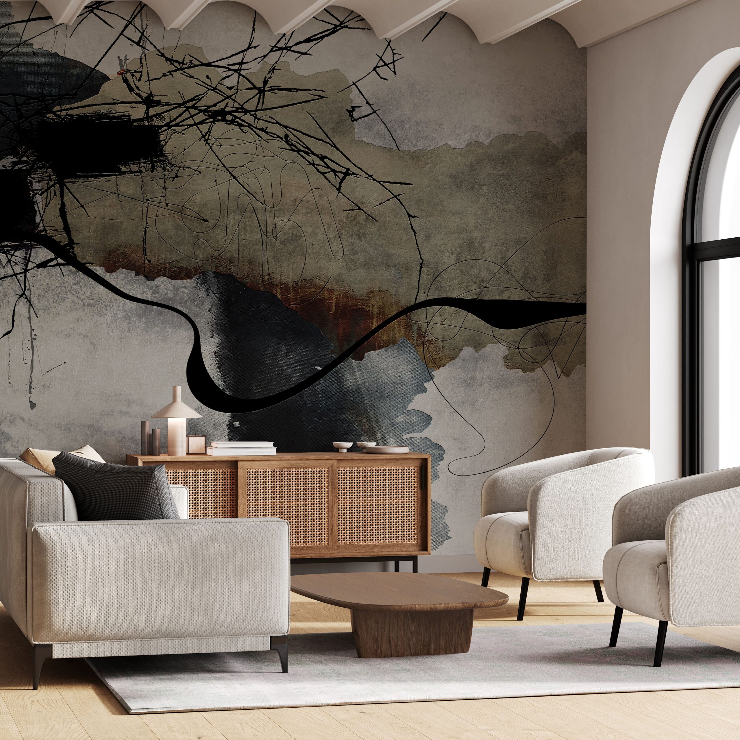 Unesite jedinstveno raspoloženje i umjetničku energiju u svoj dom uz foto tapetu “Zapetljani horizonti”. Ovaj izražajan, apstraktni uzorak skladno kombinira dinamične, crne linije sa suptilnim, zemljanim tonovima, stvarajući jedinstvenu kompoziciju punu misterije, pokreta i dubine. Zahvaljujući svom nekonvencionalnom obliku, ova foto tapeta savršeno se uklapa u moderne, minimalističke i industrijske interijere, dodajući prostoru karakter, jasnoću i umjetnički izraz.