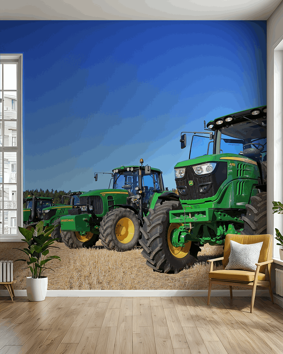 Unesite snagu moderne poljoprivrede u svoj interijer uz foto tapetu “Zeleni divovi”. Dinamična kompozicija reda modernih traktora John Deere naspram plavog neba obuhvaća veličanstvenost strojeva i snagu poljoprivrednog rada. Ovaj realistični prizor odiše mirom, skladom s prirodom i naprednom tehnologijom, donoseći jedinstven karakter svakom prostoru.