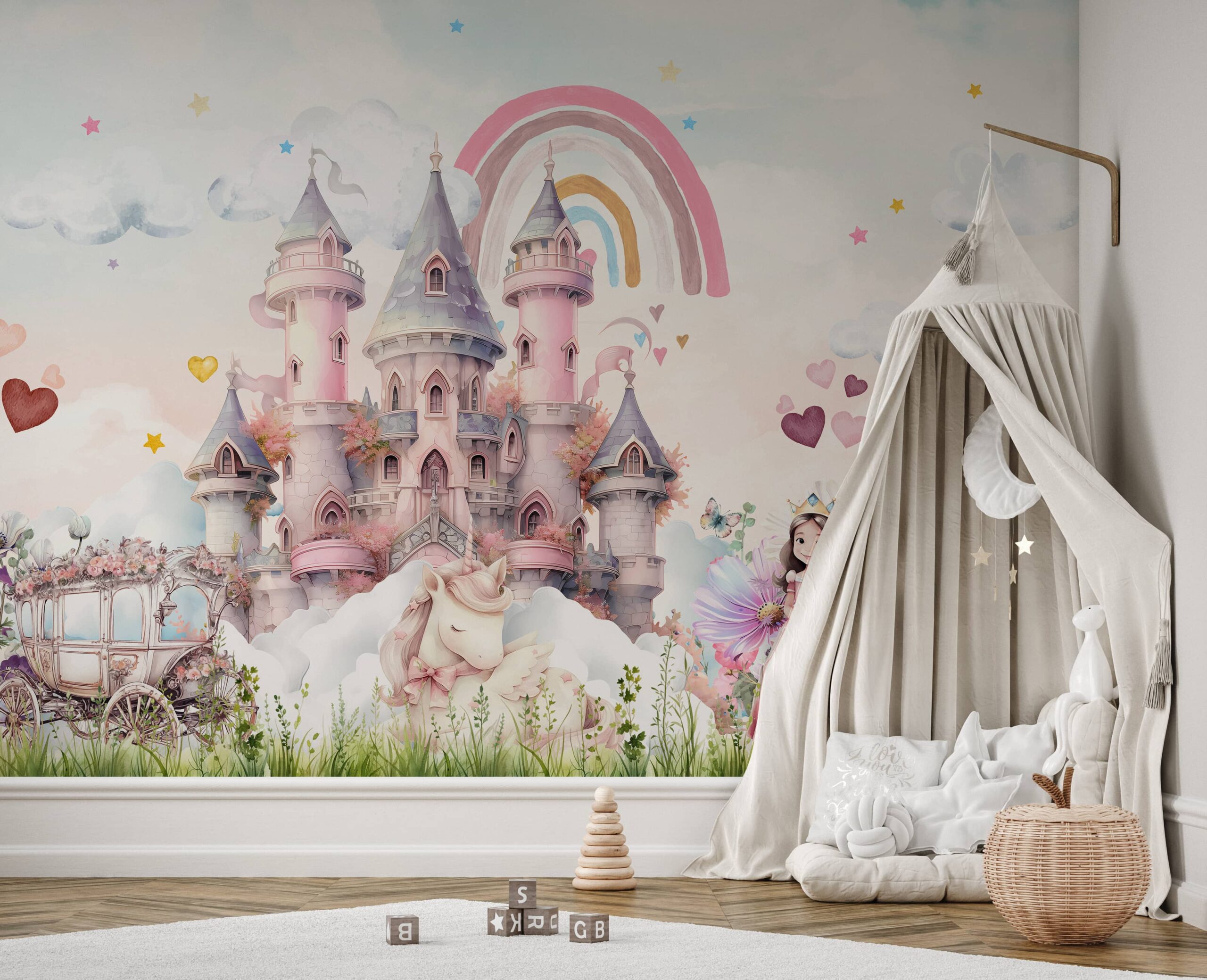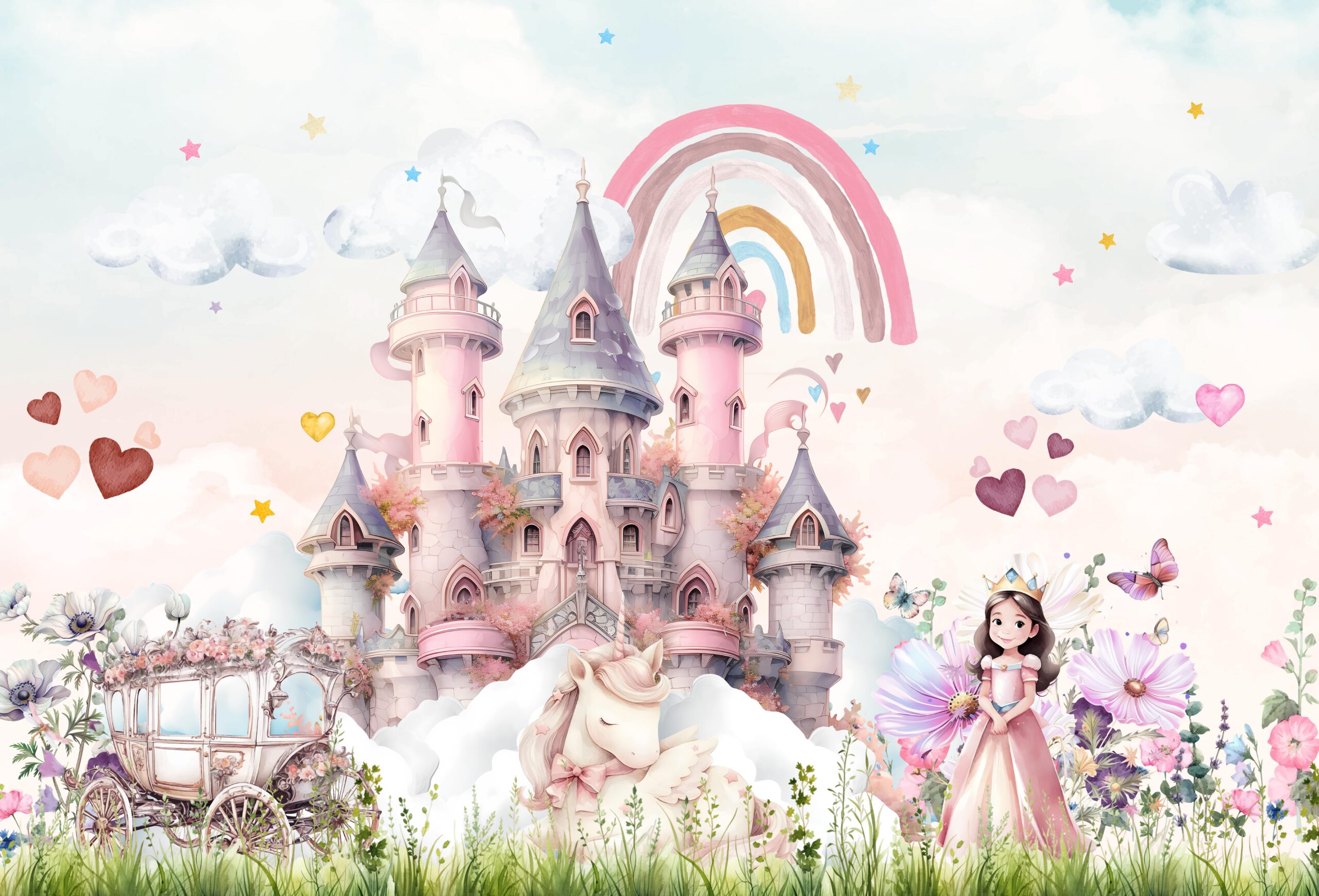Pretvorite dječju sobu u začaranu zemlju zidnom fototapetom “Zemlja ružičaste duge”. Ovaj šarmantni, pastelni motiv prenosi najmlađe u svijet pun snova – s ružičastim dvorcem, usnulim jednorogom, dugom i princezom okruženom cvijećem. Svaki detalj stvoren je s delikatnošću dječje mašte i bajkovitim raspoloženjem na umu.