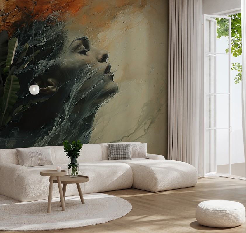 Tapeta “Ženski portret u apstrakciji” – senzualni izraz, umjetnička dubina i moderan oblik uređenja interijera