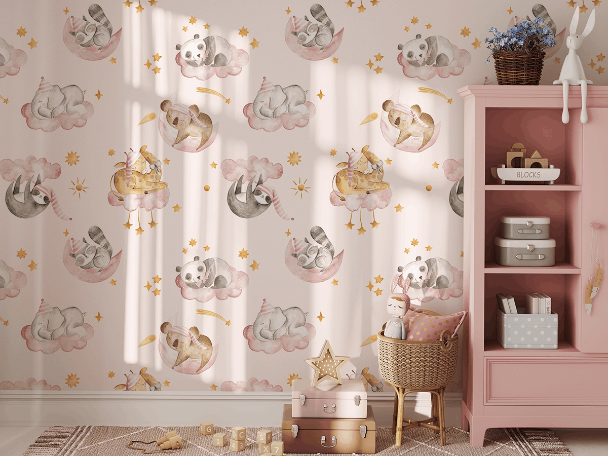 Foto tapeta “Životinjski snovi” – čarobni svijet dječjih snova, šarmantni likovi i meka, umirujuća atmosfera