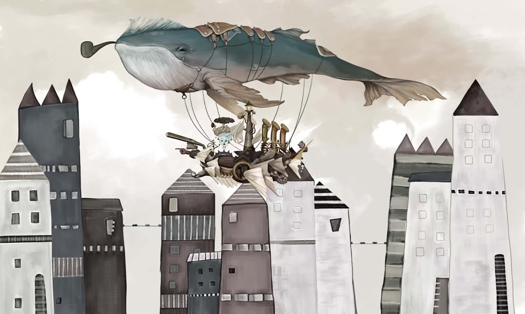 Zidni mural koji je dizajniran imajući na umu najmlađe. U središnjoj točki nalazi se leteći kit sa smiješnom cijevi, koji se uzdiže nad gradom. Zgrade jednostavnog oblika, prigušenih boja – sve to znači da mural neće preopteretiti djetetov kognitivni sustav. Međutim, uvest će neobičnu atmosferu u svaku dječju sobu, postajući izvrsna podloga za mnoge dječje igre. Univerzalne boje čine fototapete koje se mogu koristiti za završetak i dječačke i djevojčice sobe.