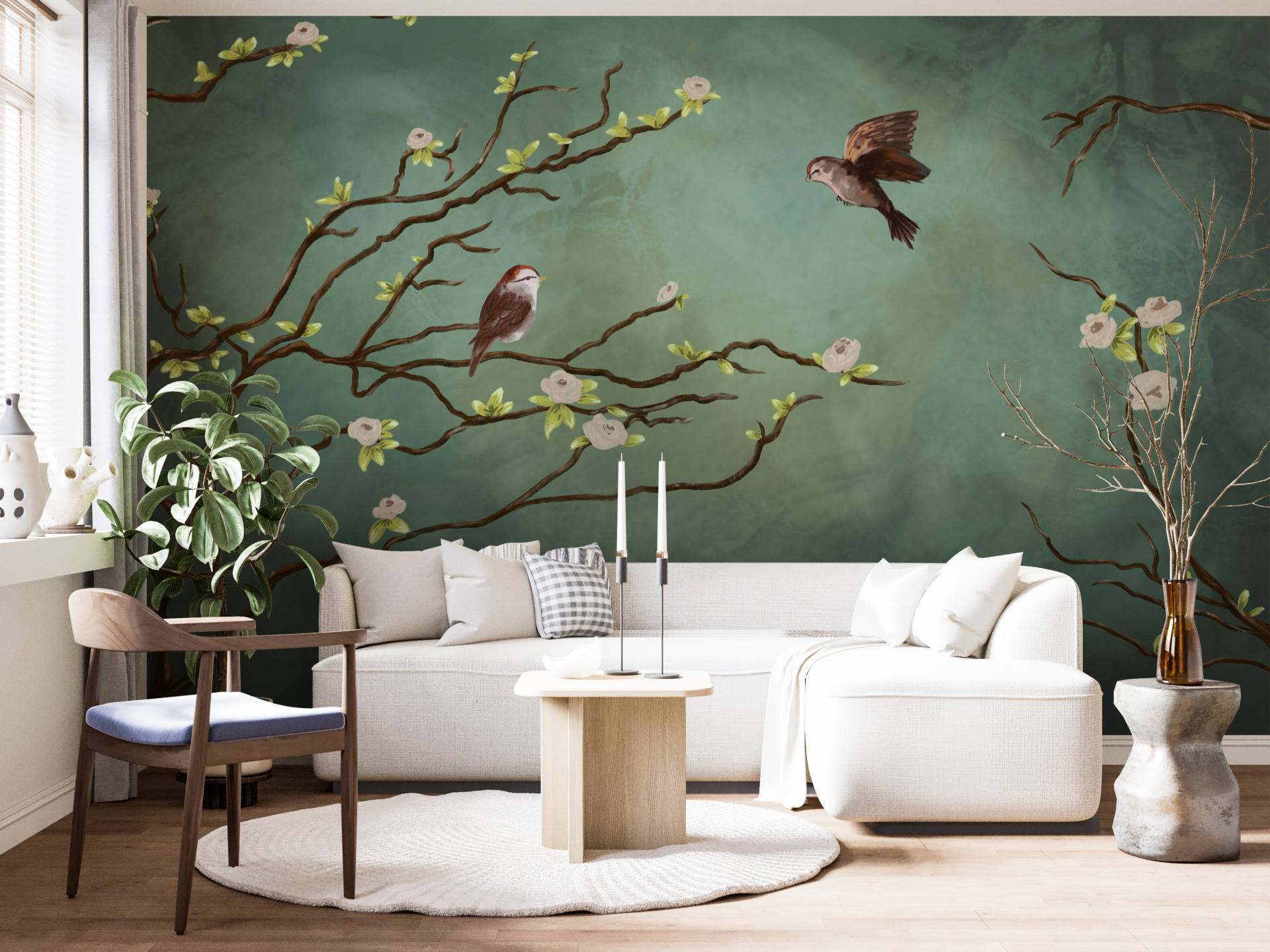 Premjestite se u čarobni vrt pun cvijeća i egzotičnih ptica uz ovaj šarmantni zidni mural.