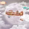 Uživajte u šarmantnom pogledu na zidni mural Psi u avionu!