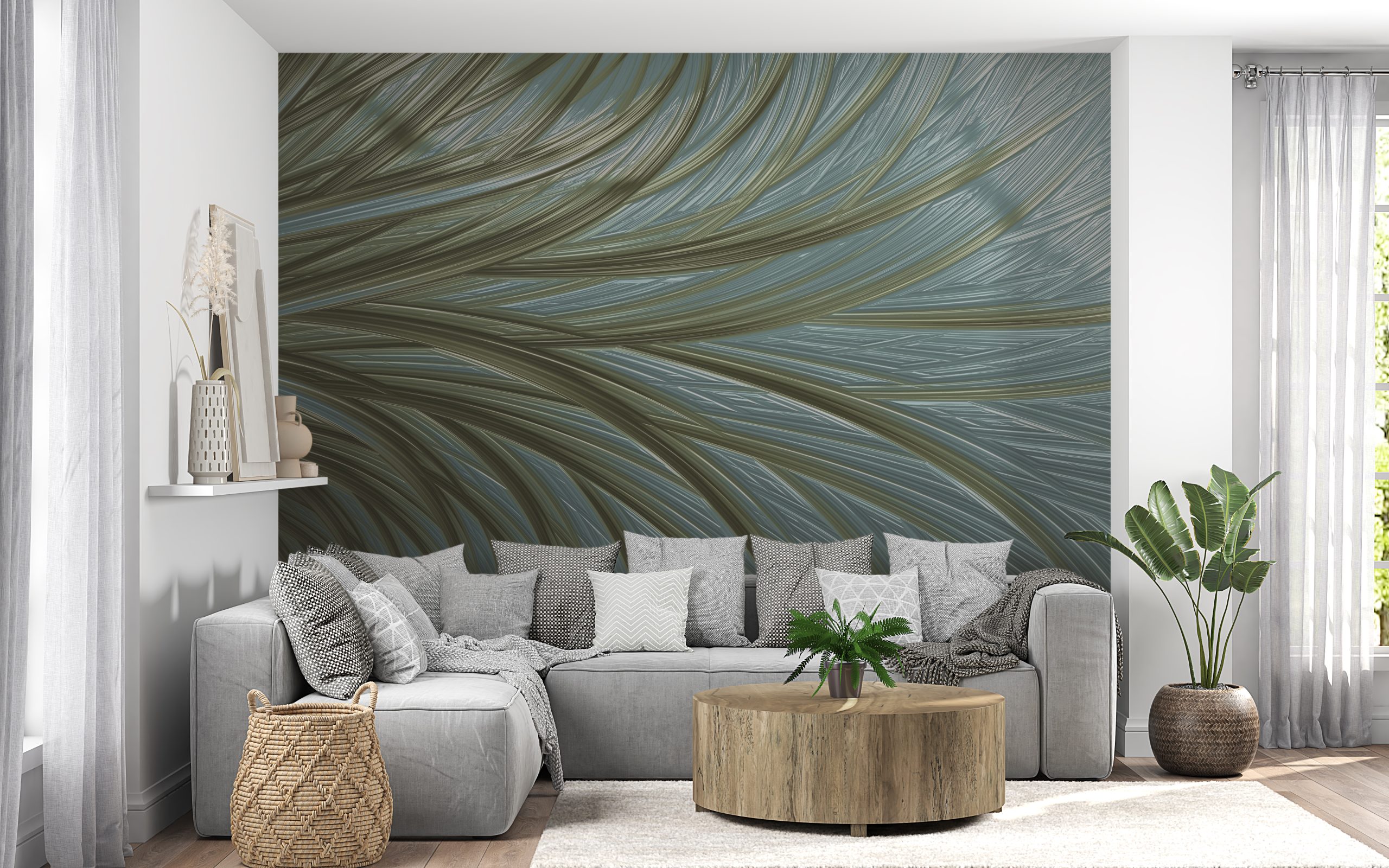 Ovaj prekrasan zidni mural prikazuje nježne nijanse zelene i plave koje će unijeti atmosferu mira i sklada u vaš dom.