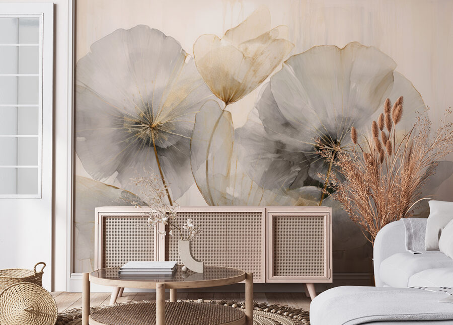 Prigušena paleta boja – bež, siva, prljavo bijela – čini da se mural lijepo stapa s prirodnim materijalima i klasičnim interijerima. Savršen za dnevni boravak, spavaću sobu ili elegantnu radnu sobu, stvara prostor pun svjetla, daha i elegantne jednostavnosti.