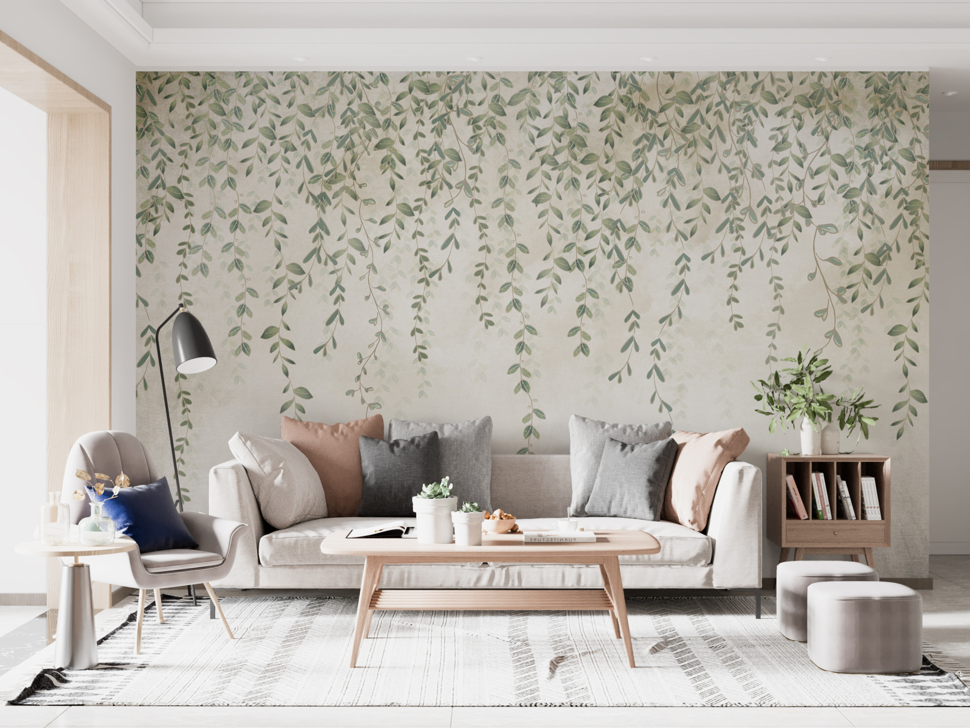 Unesite prirodu u svoj interijer s ovim šarmantnim zidnim muralom s motivom visećih malih listova.