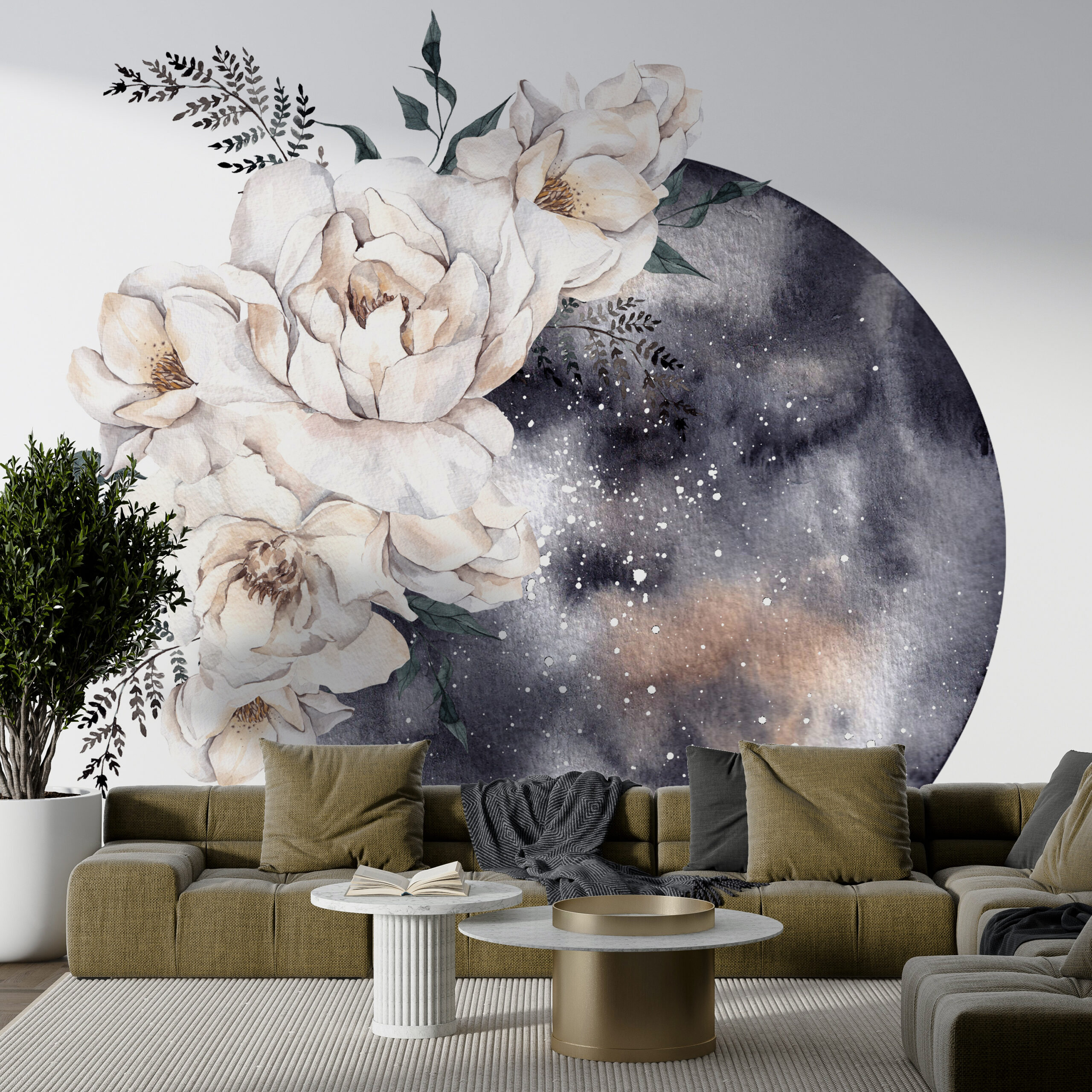 Ovaj neobičan motiv koji kombinira nježno cvijeće s tajanstvenim mjesecom dat će vašem interijeru novi, jedinstveni karakter.