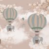 Na ovom zidnom muralu možete vidjeti veličanstvene slonove kako lebde u zraku iznad goleme savane. Njihove masivne siluete u kontrastu su s mekim nebom i planinama u pozadini, što stvara čarobnu i emotivnu atmosferu.