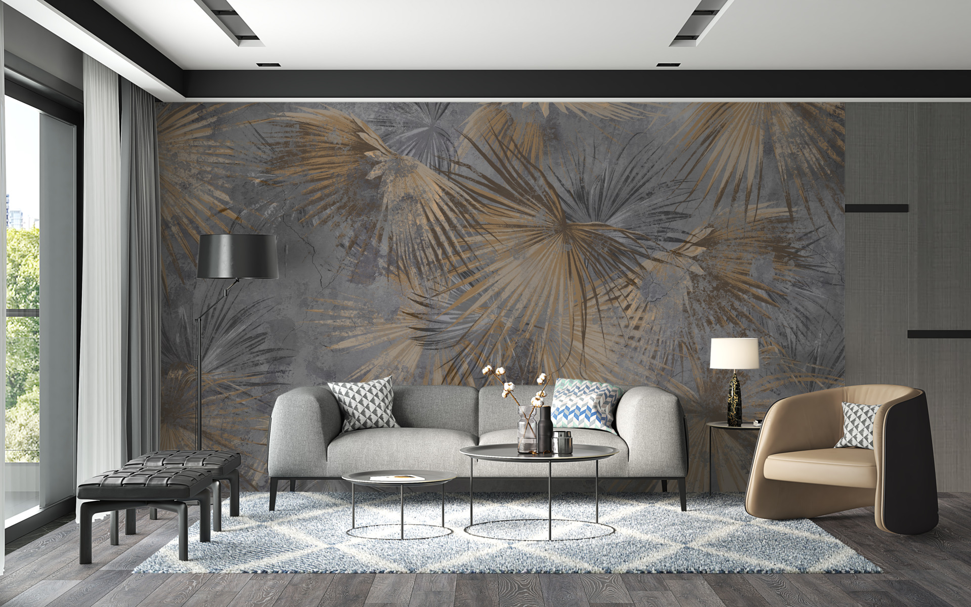 Fototapeta “Gold Spread Leaves” dostupna je u različitim veličinama, tako da je možete smjestiti u određenu sobu.